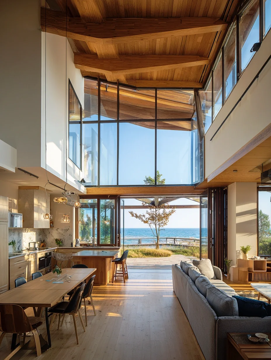 无敌海景房🌊 这里微咸的海风轻轻拂面 连空气里都是自由的味道 午后窝在落地窗边的懒人沙发 看云卷云舒 听浪花轻拍 一杯咖啡☕️ 一本好书 这是多少人向往的生活啊 原木色系搭简约又温暖 阳光洒进来的时候 整个家都在发光✨ 【作品为ai辅助创作】