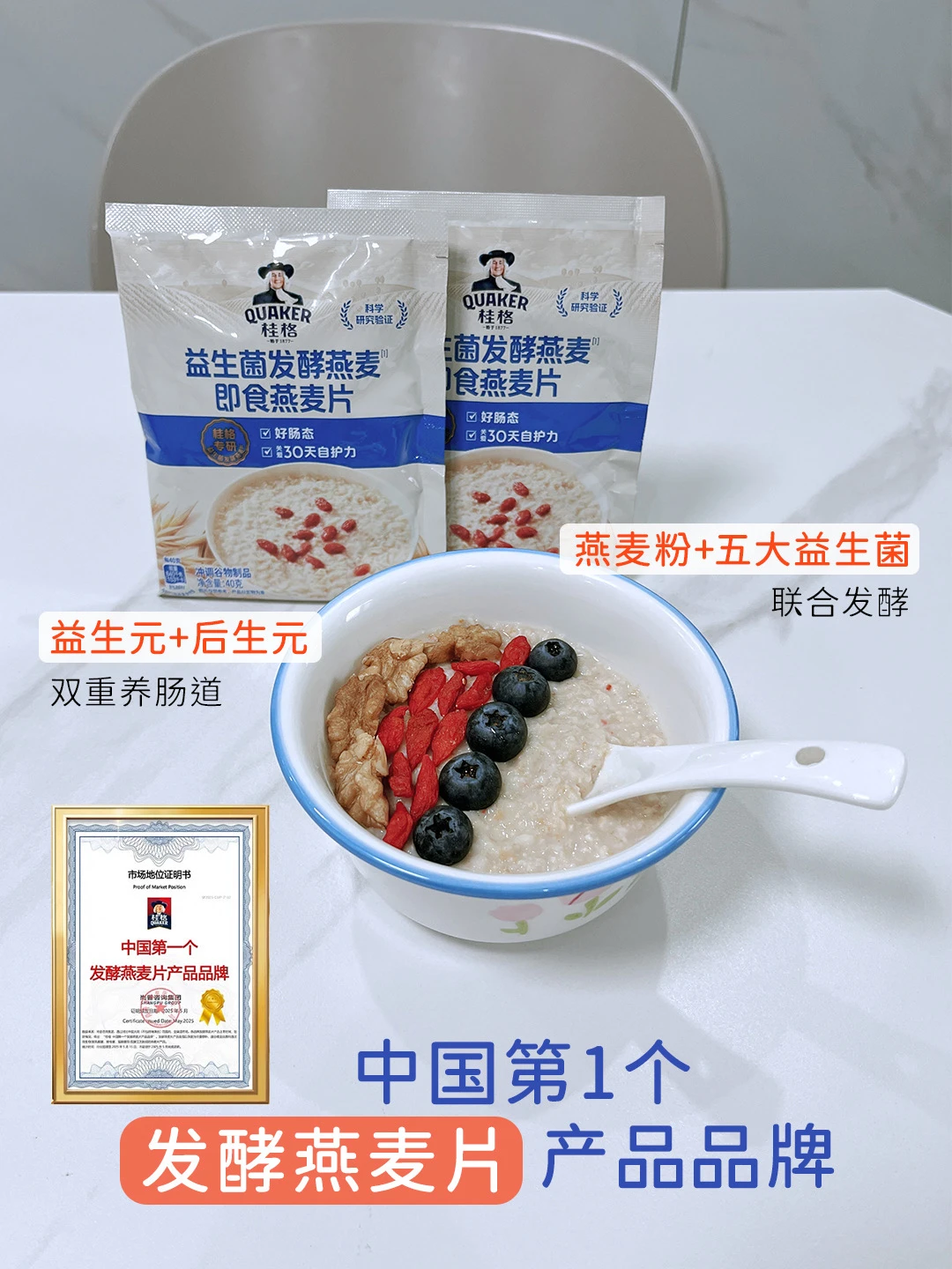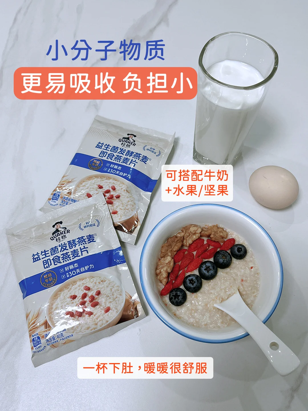 好在,现在有了更聪明的选择——⭐️桂格益生菌发酵燕麦即食燕麦片⭐️。桂格是中国第1️⃣个发酵燕麦片产品品牌。这款燕麦不是简单的食材混合,里面添加了专研的益生菌发酵燕麦粉,经5️⃣大益生菌联合发酵,所以不仅有燕麦本身的膳食纤维(益生元),还在过程中自然产生了不怕胃酸不怕高温更稳定的后生元。这样,形成了对肠道环境颇为友好的“益生元➕后生元”双重组合,自护力更稳。这种思路,既延续了我们追求方便营养的日常需求,也格外贴心地照顾到了肠道的感受。有研究显示,连续食用这款发酵燕麦14天后,参与者的肠道舒适感有所提升👍