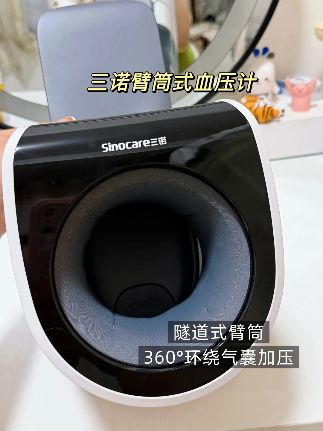 [向右R]三诺臂筒式血压计不需要绑带,直接手伸进臂筒就可以使用!