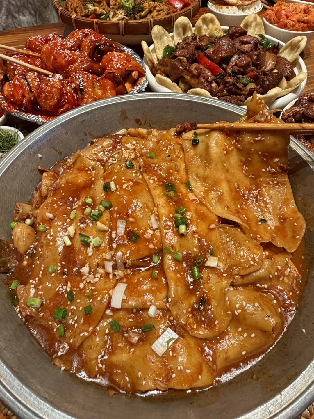 ✔️胶东地锅鱼,也是特色!喜欢吸满汤汁的面皮子!地锅鱼被酱汁炖的入味,咸度也刚刚好!