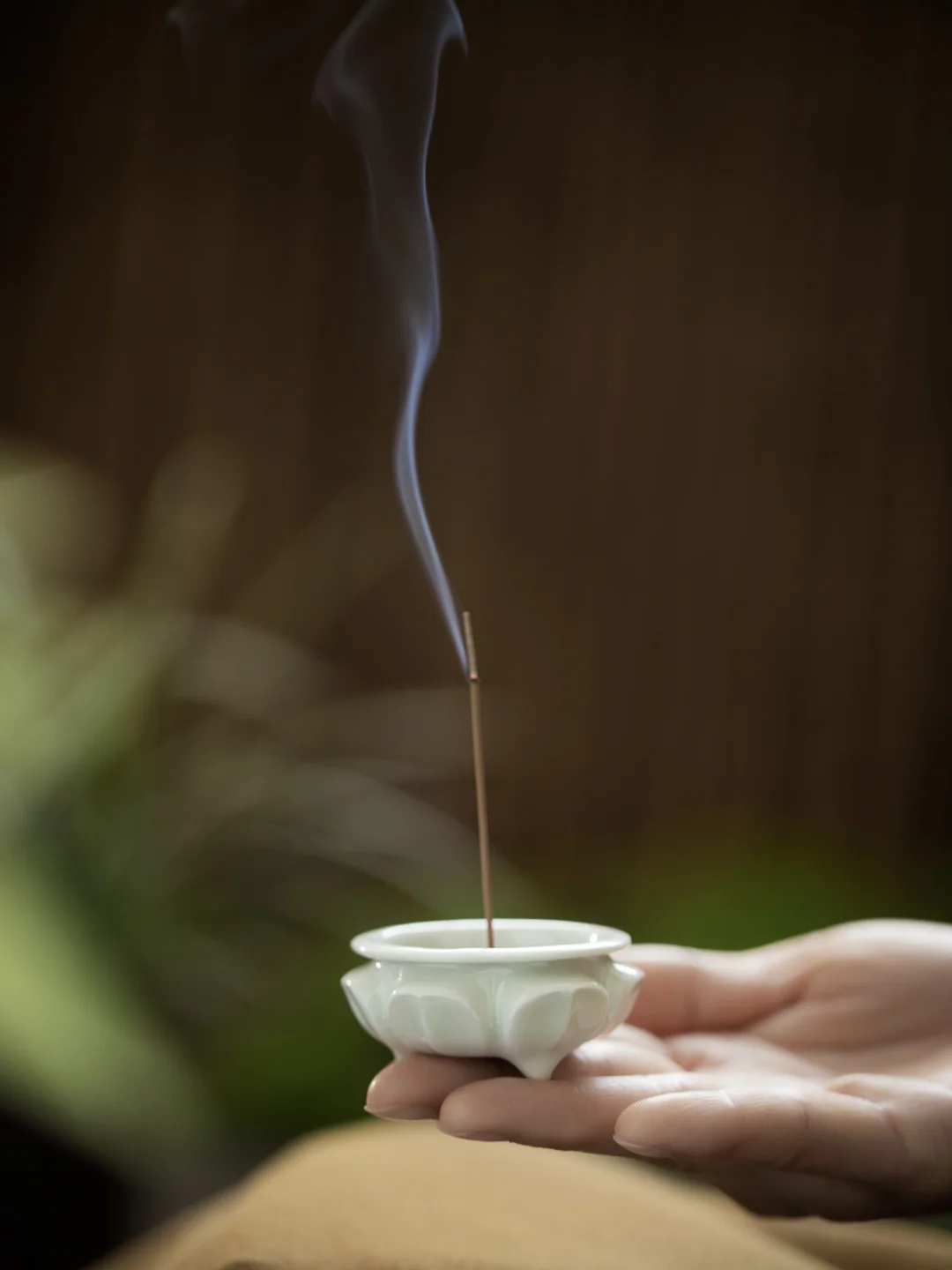 它是四炉中最小的一个。莲草纹浅浅地刻在炉身,草木灰釉温温润润。小,却不觉得弱;灵巧,却不显轻浮。放在茶席一角,偶尔点一支线香,刚刚好。