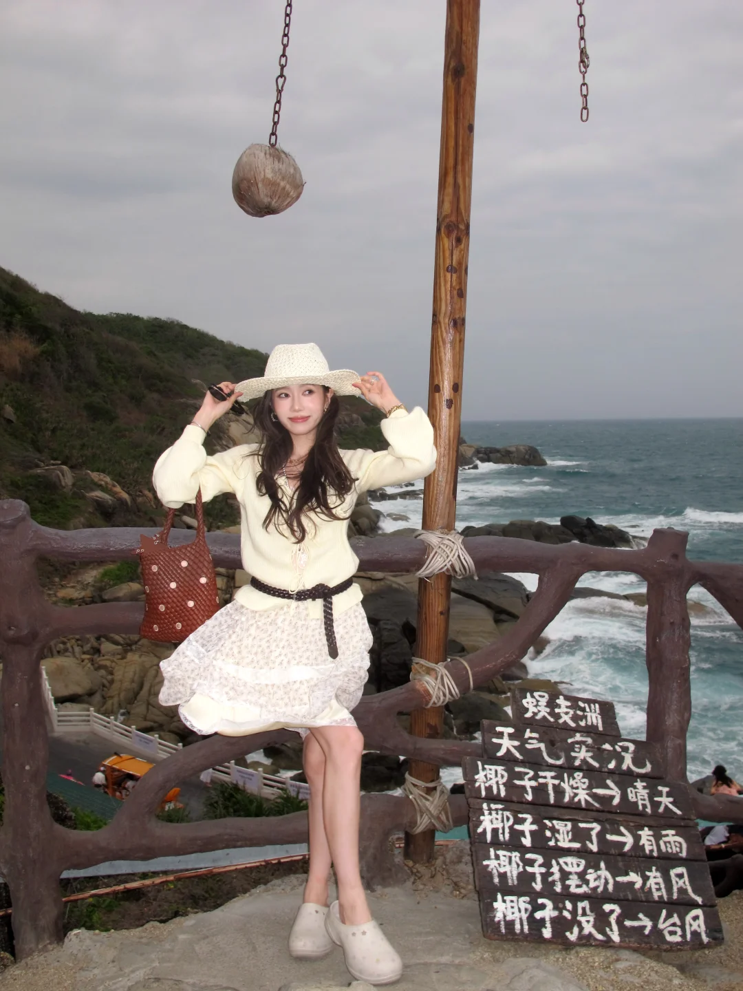 照片里好拍的机位都标啦 🥥: 第一站 海洋之星下车 拍椰子风向标 第二站 情人谷 前面会有个热门打卡点水果摊 水果摊周围有秋千~ 第六站 神兽乐园 水吧台(COCONUT)也巨好出片 可以拍蜈支洲岛地标牌 步行往直升机方向走 附近还有一个happy 树杈