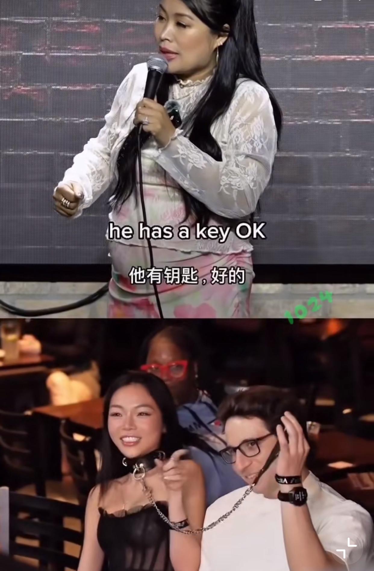 在一场脱口秀演出中,一名外国男人牵着自己的越南女伴观看表演… 台上表演女子调侃,女子脖子上的是狗项圈吗? 女子点了点头,这名男子说这是他们第二次约会,正在尝试新的关系界限,想看看她能走多远… 类似的事情也不是第一次看到了,但实在想不明白,为什么总有亚裔女会接受这样的行为,而且看着她们还挺骄傲的,不觉得很屈辱吗?