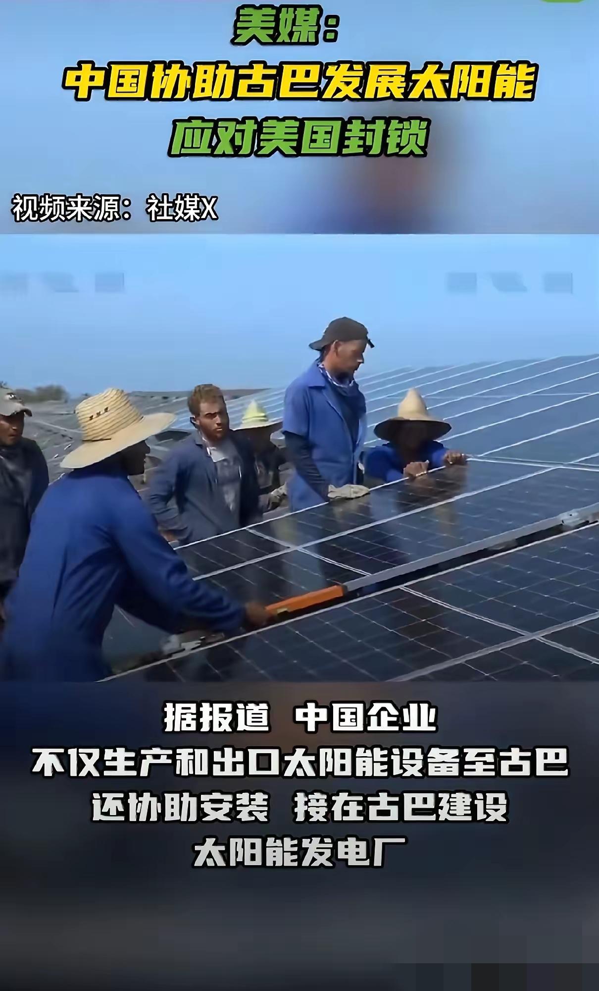 中国助力古巴能源突围!光伏电站遍地开花,清洁能源点亮加勒比 2026年3月,古巴多地告别频繁停电的日子,哈瓦那街头的路灯准时亮起,医院手术室不再因断电中断手术,普通家庭也能稳定使用冰箱与照明设备。这一切改变,都来自中国援建与合作建设的光伏电站稳定并网发电,让古巴在长期能源封锁下找到可靠出路。 古巴长期面临外部能源封锁,传统燃油发电依赖进口燃料,供应极不稳定。2026年3月中旬,古巴国家电力系统一度全面断电,全国超千万人口受影响,部分地区停电时长超过12小时。电网老化、燃料短缺、发电能力不足,三重压力让民生与经济运转举步维艰。制糖、烟草等支柱产业因断电减产,旅游收入大幅下滑,民众日常生活被彻底打乱。 中国在古巴最艰难的时刻伸出援手,没有附加任何政治条件,全程以务实合作推进光伏项目落地。2025年11月,中国援古巴35兆瓦光伏电站实现全容量并网,项目覆盖6个省份、建成7座电站,每年可减少近1.8万吨进口燃料消耗。中方还同步推进85兆瓦光伏电站建设,首批设备已运抵古巴,剩余物资陆续到位,进一步扩大清洁电力供给。 中国光伏设备与技术经受住加勒比地区复杂气候考验,东部光伏园区成功抵御飓风侵袭,持续稳定输出电力。古巴国家主席迪亚斯-卡内尔多次公开感谢中国支持,称赞中国设备技术先进、质量可靠,为古巴能源转型提供关键支撑。 格拉玛省偏远乡村的764户家庭,通过中国技术完成自主光伏供电系统升级,彻底告别无电生活。当地村民卡洛斯说,以前家里只能靠蜡烛照明,孩子晚上没法写作业,现在光伏板装上后,全天有电,生活质量明显提升。圣地亚哥省Las Guásimas光伏园区配备4.2万块中国光伏板,装机容量21.8兆瓦,日均发电大幅缓解当地用电压力。 中国对古巴光伏设备出口规模快速增长,从2023年的500万美元飙升至2025年的1.17亿美元,两年内增长超20倍。按照合作规划,到2028年中方将协助古巴建成92座光伏园区,目前半数以上项目已并网发电。这些电站不仅解决民生用电,还支撑农业灌溉、食品加工等关键领域运转,助力古巴经济逐步恢复。 中古能源合作不只是建设电站,更包含技术培训、运维支持、电网升级等全链条帮扶。中国工程师常驻古巴,手把手培训当地技术人员,帮助古巴建立自主运维能力,确保光伏电站长期稳定运行。这种授人以渔的合作模式,让古巴真正掌握清洁能源发展主动权。 美国的长期封锁没能困住古巴,反而推动古巴加快能源转型步伐。中国光伏电站的落地,让古巴摆脱对单一化石能源的依赖,走出一条符合本国国情的绿色发展道路。加勒比海的阳光,通过中国技术转化为可靠电力,照亮古巴千家万户,也为全球受制裁国家能源转型提供可行范例。 清洁能源合作拉近中古两国人民距离,也彰显真正的国际人道主义精神。中国始终坚持平等互利、不干涉内政的合作原则,用实际行动帮助发展中国家破解发展难题,这与少数国家单边制裁、极限施压的做法形成鲜明对比。 光伏板在古巴土地上连片铺开,带来的不仅是光明与电力,更是希望与尊严。中国用清洁能源助力古巴突围,也为全球能源合作与公平正义写下生动注脚。 各位读者你们怎么看?欢迎在评论区讨论。