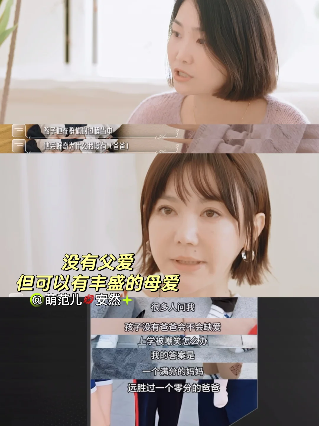 比如第二期嘉宾源源面对单亲家庭的小孩没有爸爸的问题,会说,满分的妈妈可以胜过零分的爸爸,人生的体验更重要。李欢会说,女孩会把自己过得很好。