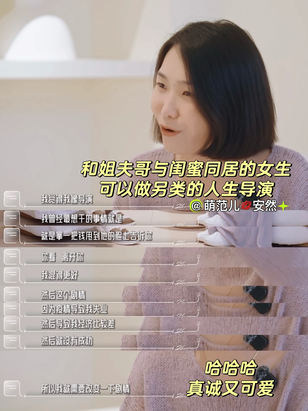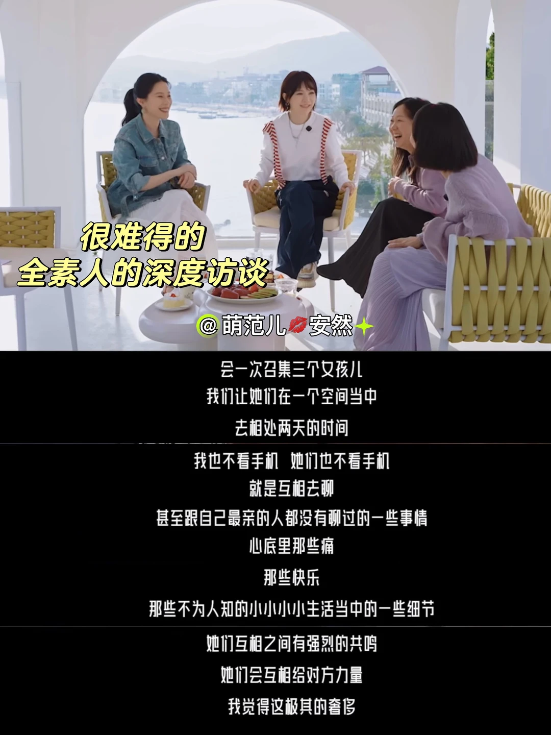 她选择的纯素人女生都很有生命力!而且头脑清晰,会独立思考,还有简练清晰的表达能力。她们有能力逃脱现实的困境,走一条非常小众但是能够拯救自己的路。她们的发言经常让我动容。