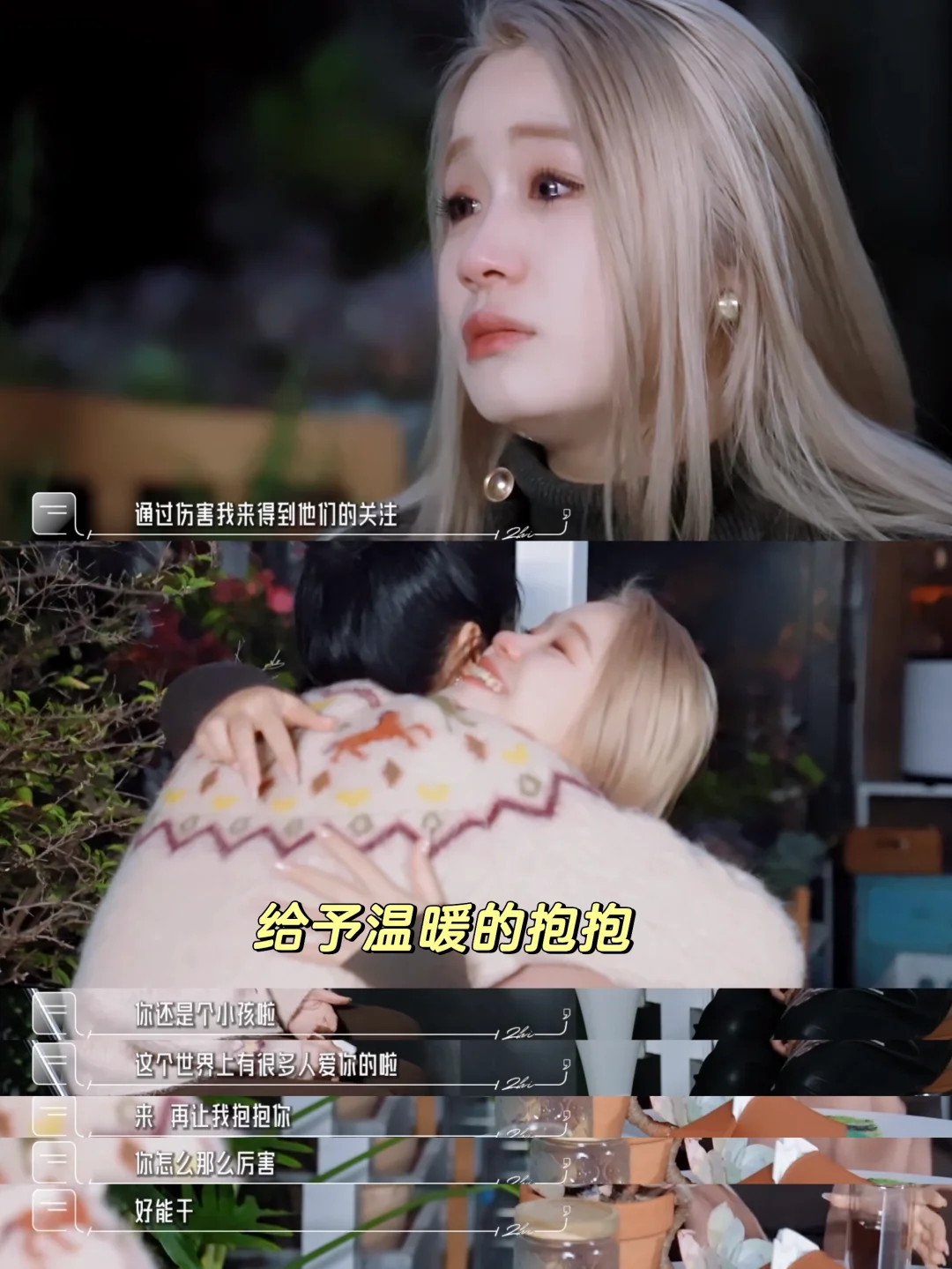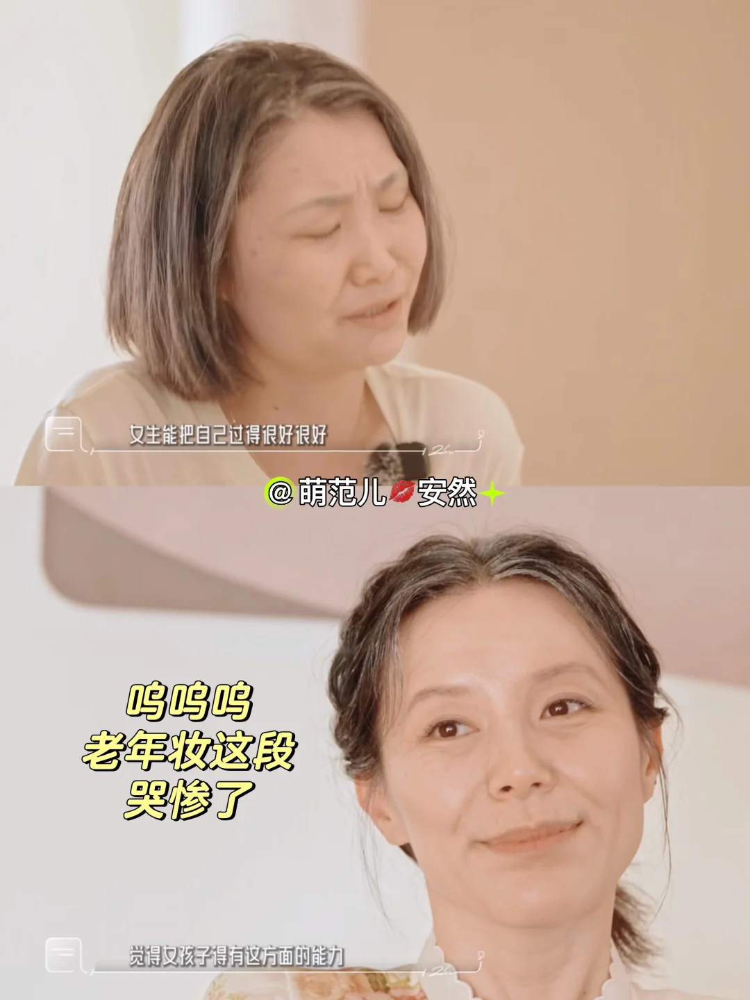 她特别温柔,真情实感地为这些女孩子共情。以往的主持人都是要保证自己的客观、理性、中立,尽量控制住自己的情感,不会当面表露。她会和嘉宾一起哭,一起笑,和她们一起化老年妆。在嘉宾说自己受到伤害的时候,她会非常温柔的承托,会关爱她们内心的内在小孩,会和她们的心一起共振。她好像不是主持人,而是一个朋友,一个闺蜜。