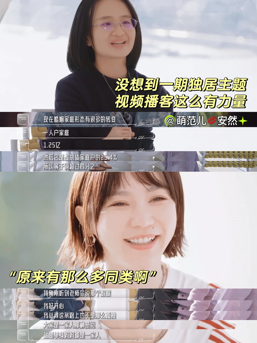 为了更好的支持女孩子们,第二期她还请到了专家,告诉大家,现代家庭超过1/4都是独居家庭——所以,你不是一个人!