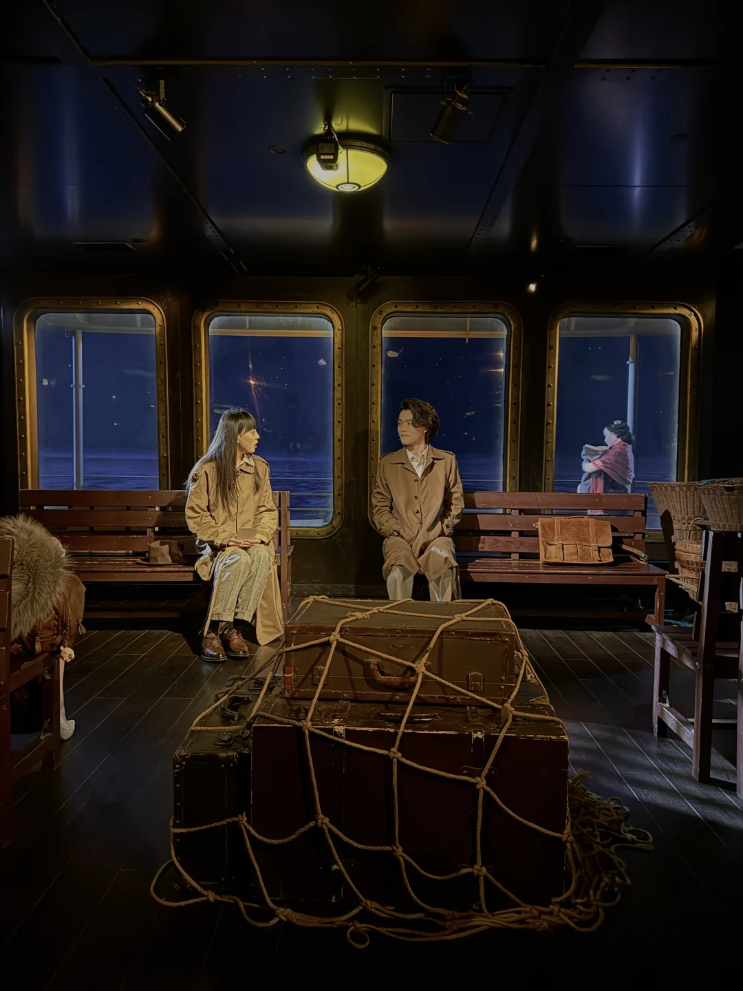 这艘船没有固定的观众席,每一个舱室、走廊都在上演着别离与重逢。