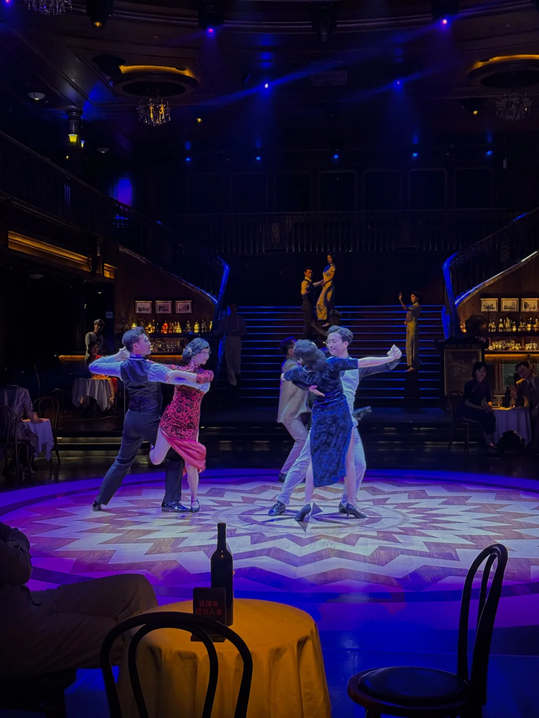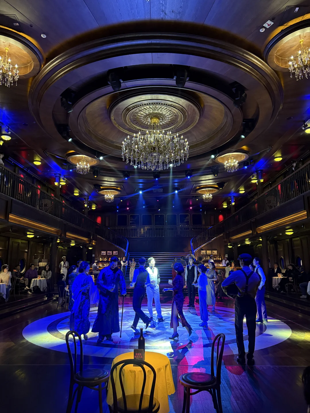 乐队在甲板上奏起爵士乐,身边是穿着旗袍和西装的人们相拥起舞。