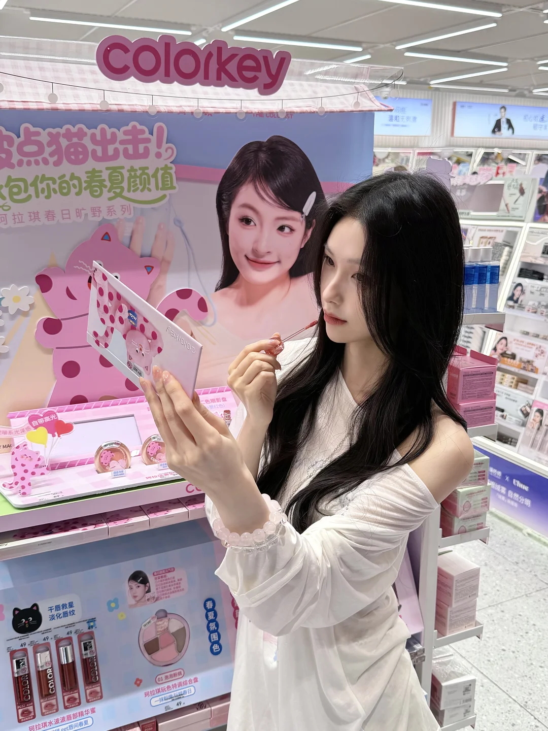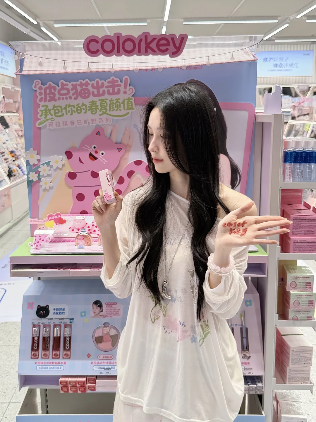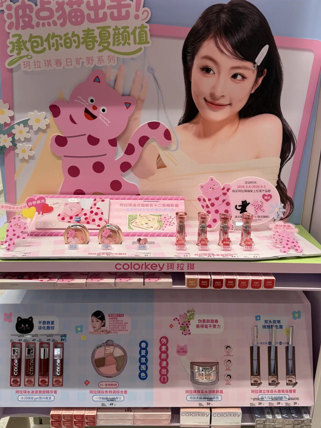 谁能拒绝粉粉嫩嫩的珂拉琪波点猫联名! 唇露质地轻盈,水润不拔干 元气嫩妹色清透又显白 搭配同系列彩妆,轻松打造春日出游妆 温柔氛围感直接拉满~