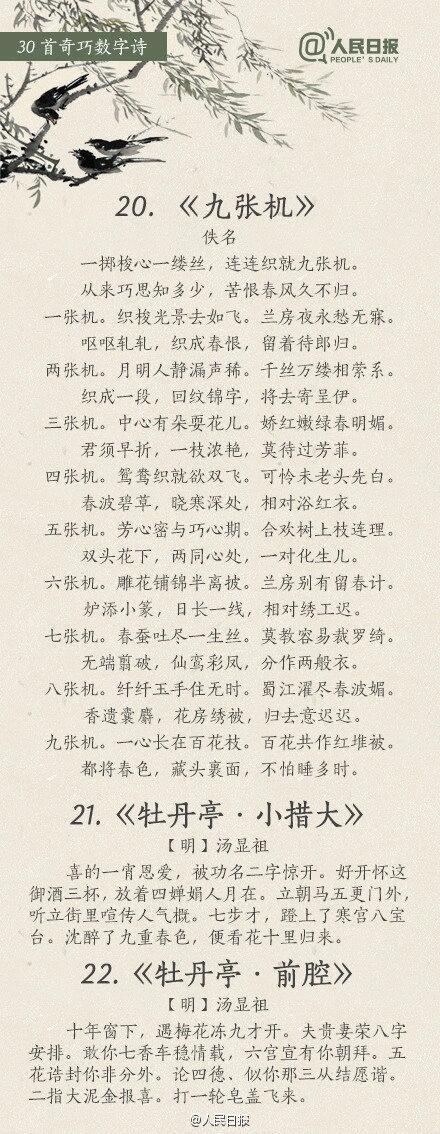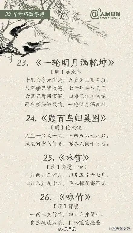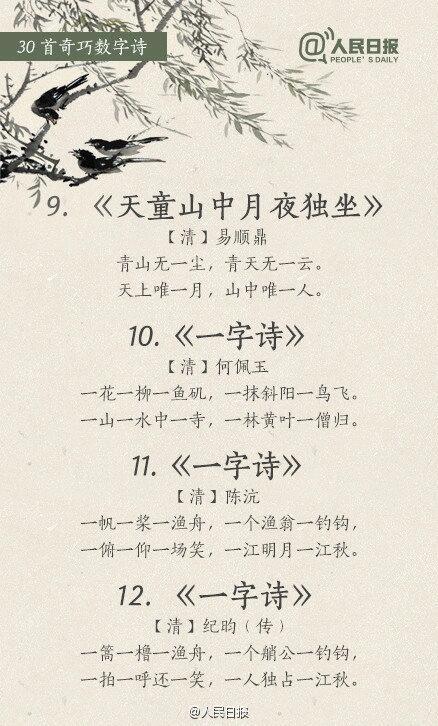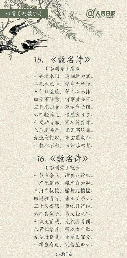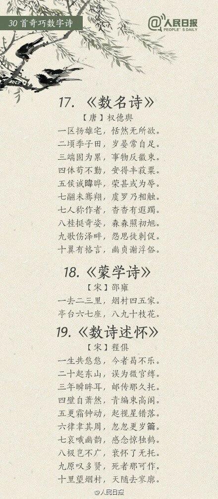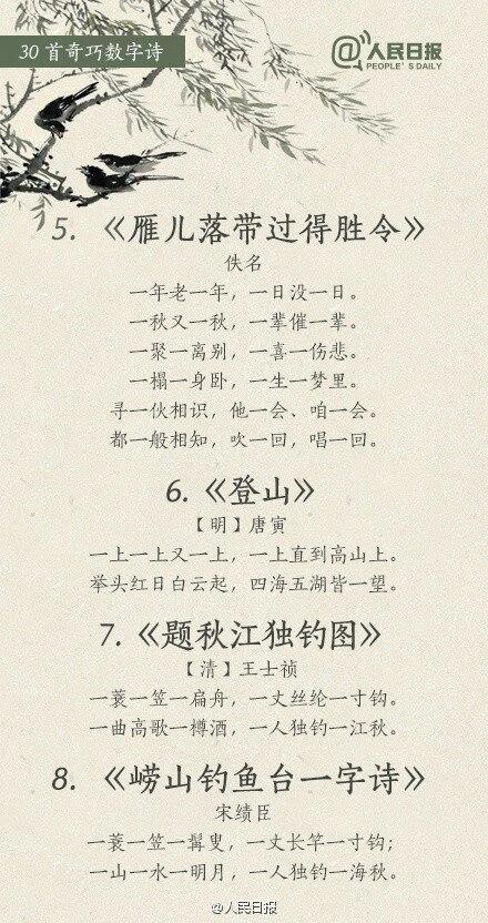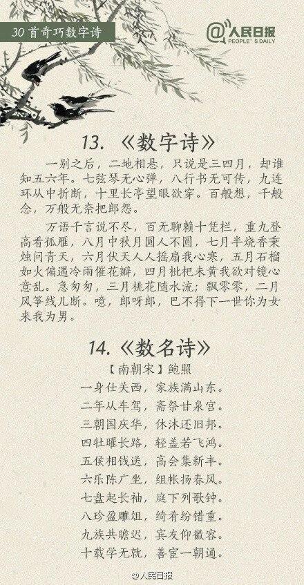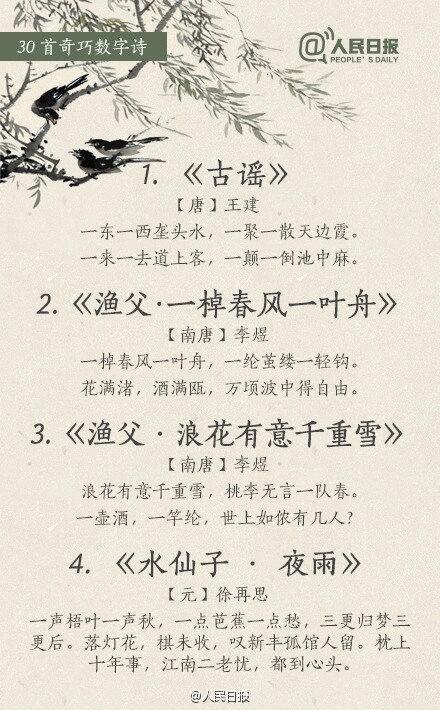 人民日报分享30首奇巧数字诗,尽显古诗词的魅力