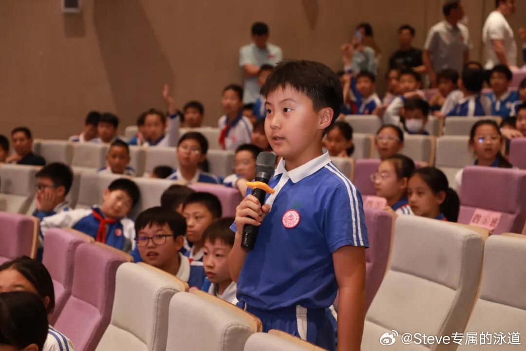 互动交流环节气氛热烈,同学们踊跃举手,围绕游泳技巧、梦想追逐、坚持成长等话题向汪顺积极提问。汪顺耐心细致地逐一解答,他鼓励孩子们要有一颗勇敢向前的心,积极参与体育锻炼,在运动中收获健康与快乐,在坚持中成就更好的自己。