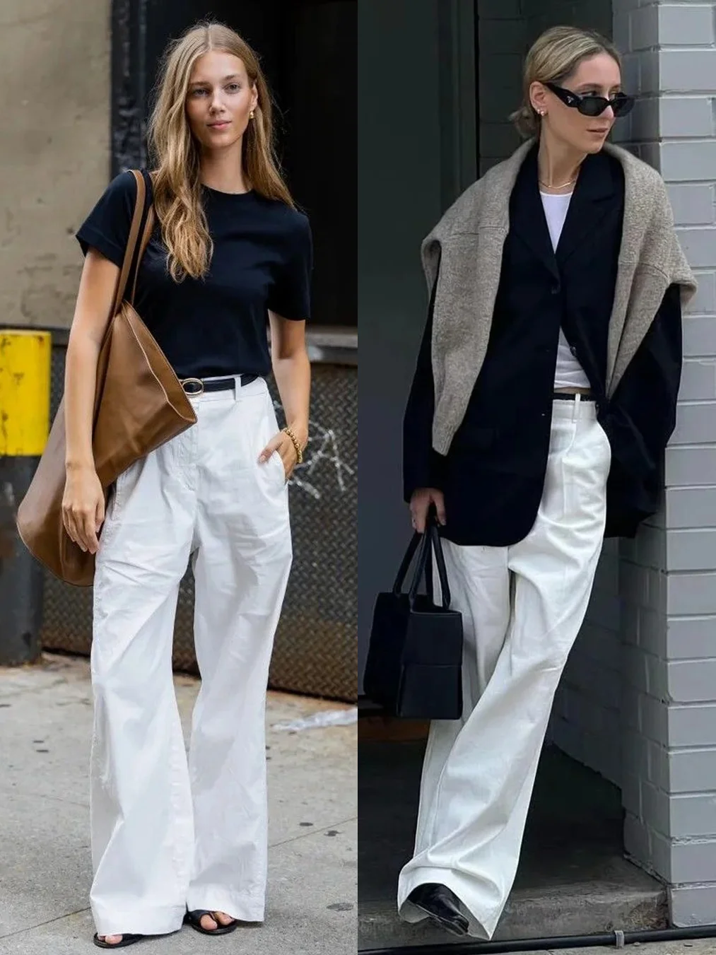 松弛时髦的白色裤子穿搭合集~