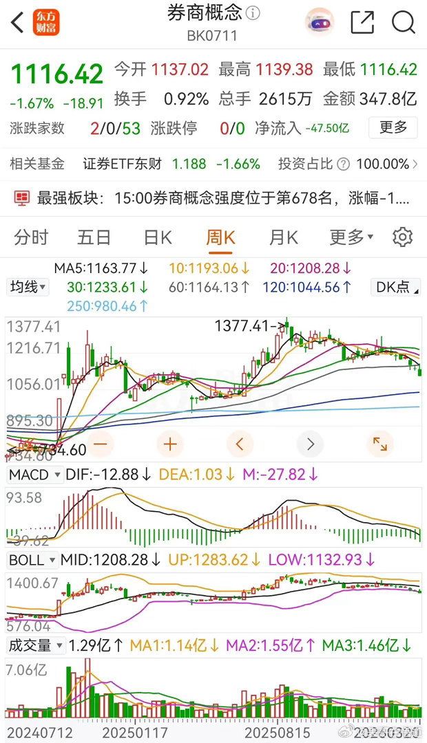三是“控盘工具”属性:券商概念板块在非牛市环境下常被用于护盘或砸盘(如2025年12月的护盘、2026年1月的调控过热等),如今再也不是领涨主线了。