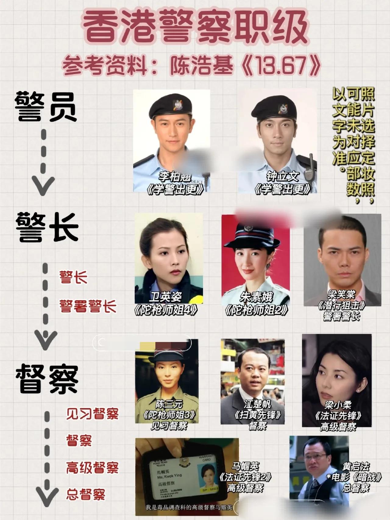 原来TVB有那么多人转行当警察! 最近,前TVB记者邬凯宁当上重案组总督察的新闻,引起了不少关注,网友们点赞之余,还忍不住感叹,新闻女王变陀枪师姐,这是港剧照进现实啊。 事实上,除了邬凯宁,TVB还有不少记者、主播、演员,在淡出电视屏幕后,选择转行做警察,且职位都不低,有人甚至做警司了。 这里面最出名的莫过于郑柏林,八九十年代合作过不少大咖,拍摄了一系列TVB经典剧集和电影的他,大学毕业后没有继续演戏,而是毅然考入警队。经过多年的努力,他如今已经是总督察,相当厉害。 最后,附赠香港警察的职级简介,以TVB剧集或港片角色举例说明。TVB 港星生活分享