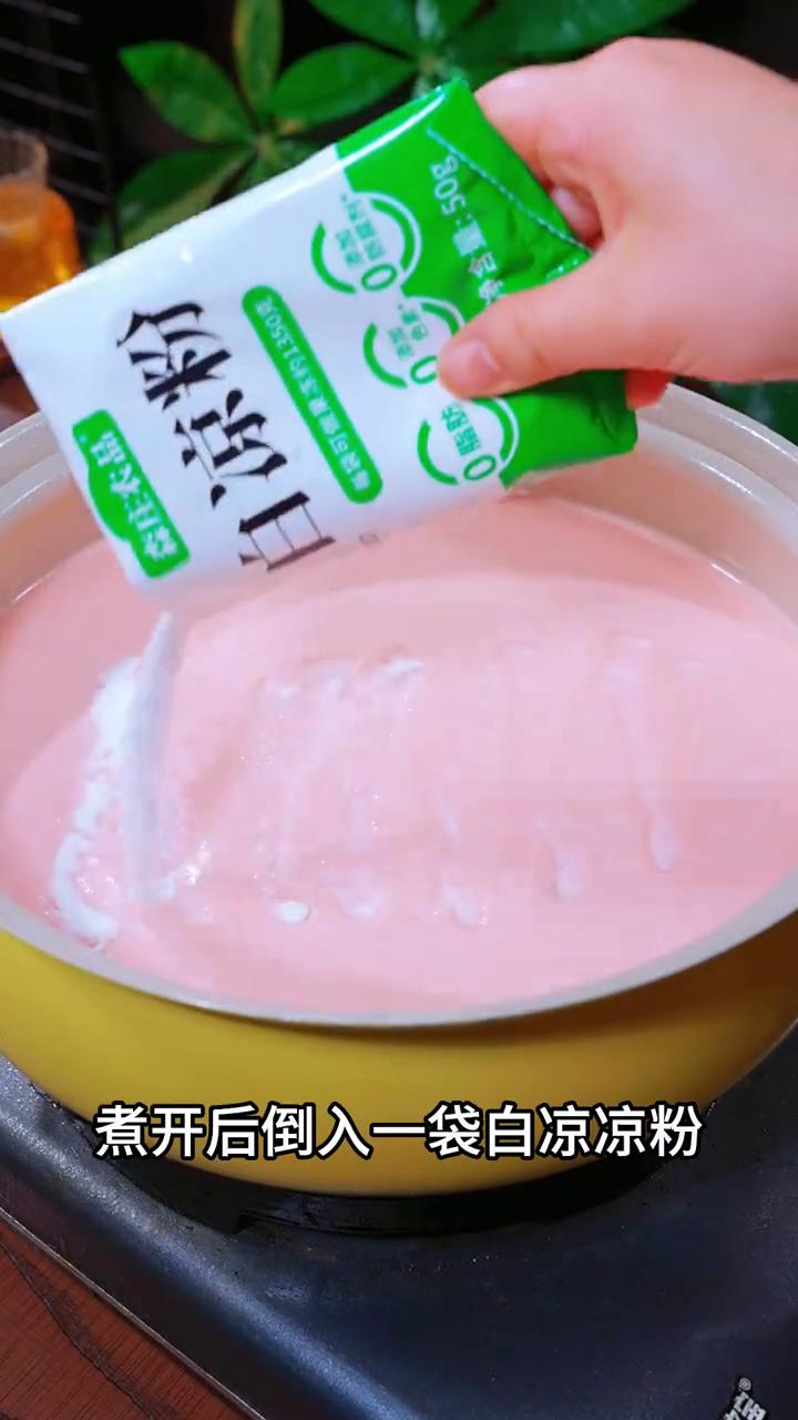 西红柿果冻。 我老婆就是靠几颗西红柿一年赚了80多万,在深圳买了两套房。今天我就把这个配方告诉大家,清脆爽口,qq弹弹的可好吃了。 ·树上摘的西红柿先用开水烫一下,再去皮切成大大的小块,放入搅拌机中。 ·加入300毫升纯牛奶搅打成汁,然后过滤进锅里。 ·再加入30克白糖煮至微开。 ·煮开后倒入一袋白凉粉。这道美食好吃的关键就是这个白凉粉,味道鲜美,凝固块。 ·再次煮开后倒入干净的容器里面,自然放凉就凝固成型。 西红柿味浓郁,营养丰富,酸酸甜甜的,真的很好吃。 不知道这个白凉粉哪里有的可以点我头像。