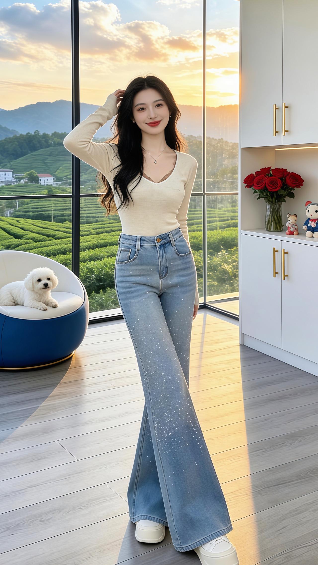 高腰显瘦牛仔裤 显高显瘦显腿长