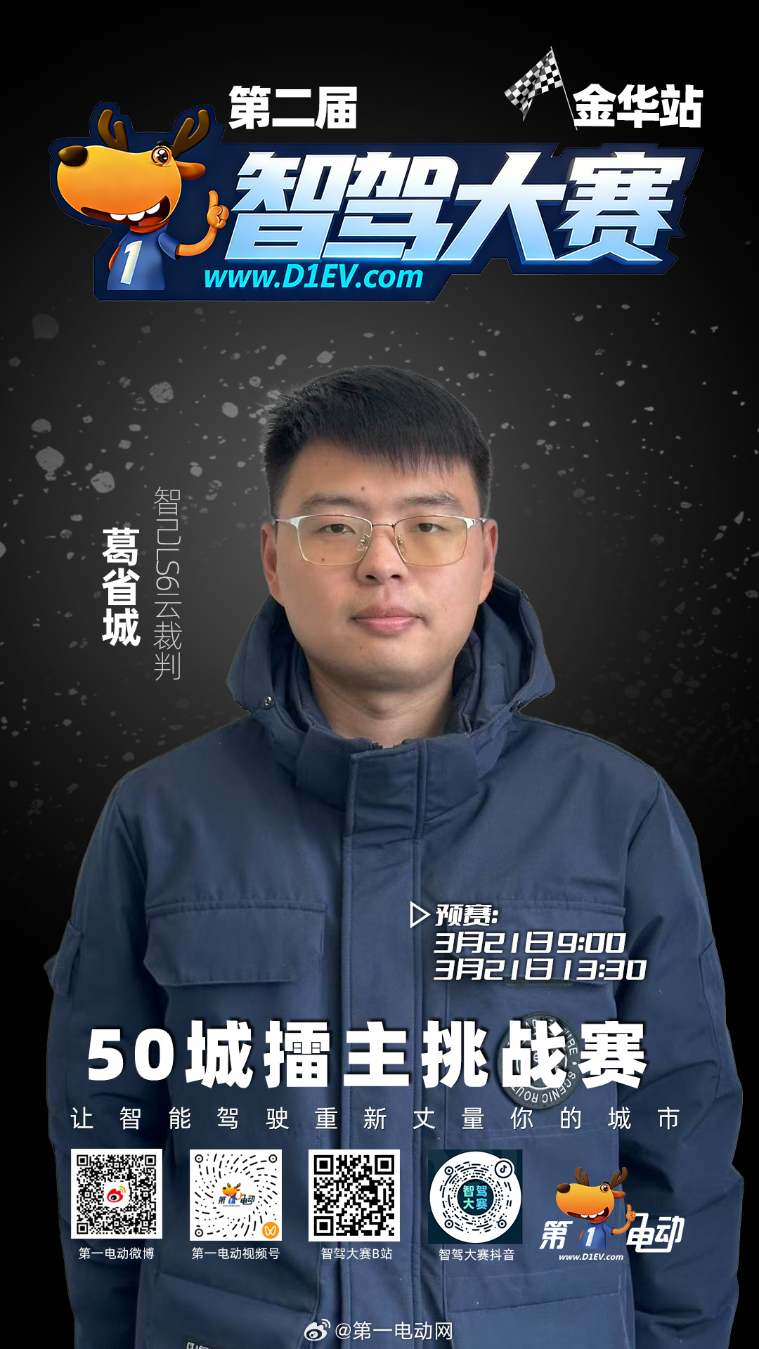 金华站预赛明天上午9:00开跑,Momenta系四款车型率先登场。除了随车裁判现场判罚,还有四位“云裁判”在线上通过固定机位直播全程监督,实时记录每一处接管、每一次扣分——他们就是你的“眼睛”!