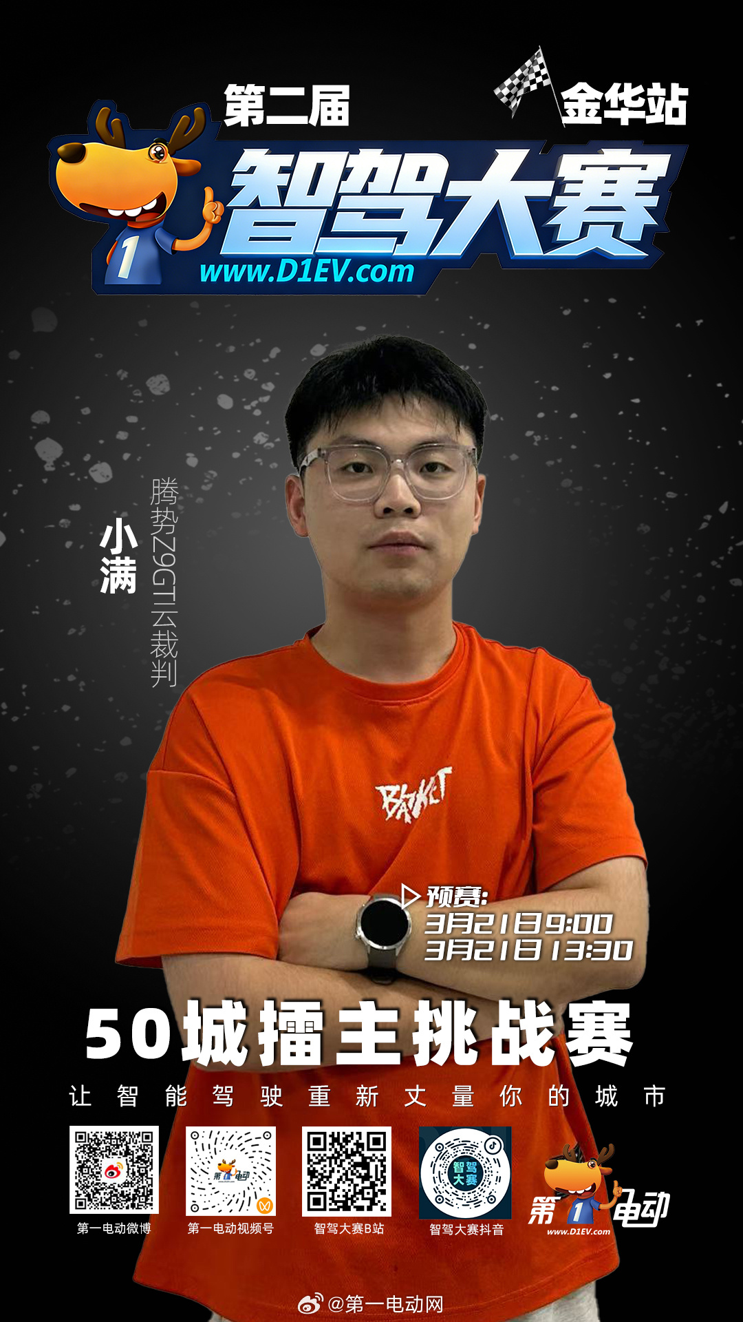 ⏰ 直播锁定:3月21日 9:00 预赛上午场📺 官方主直播:第一电动 微博|视频号、智驾大赛 B站|抖音📺 单车车内视角:微博搜“智驾大赛”,各车型独立直播间已就位