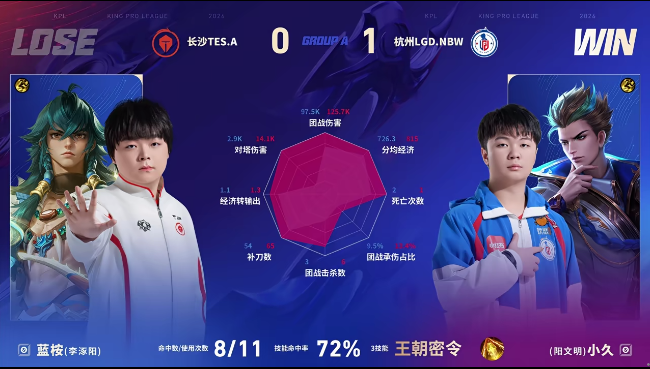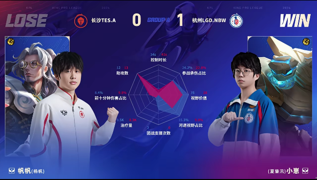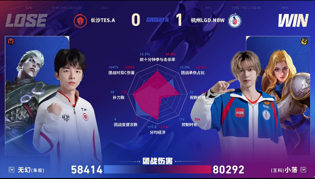 LGD/TES第一局数据对比:小落夏洛特团战伤害高达八万