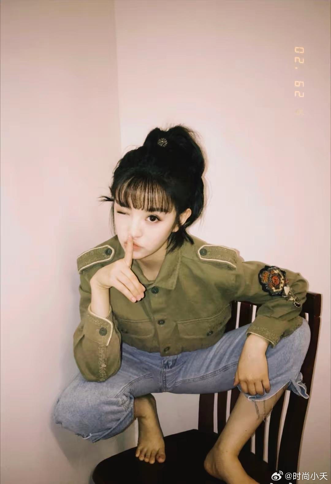 看眼睛,有点沧桑感,但是白嫩的脚丫子,看着好年轻。
