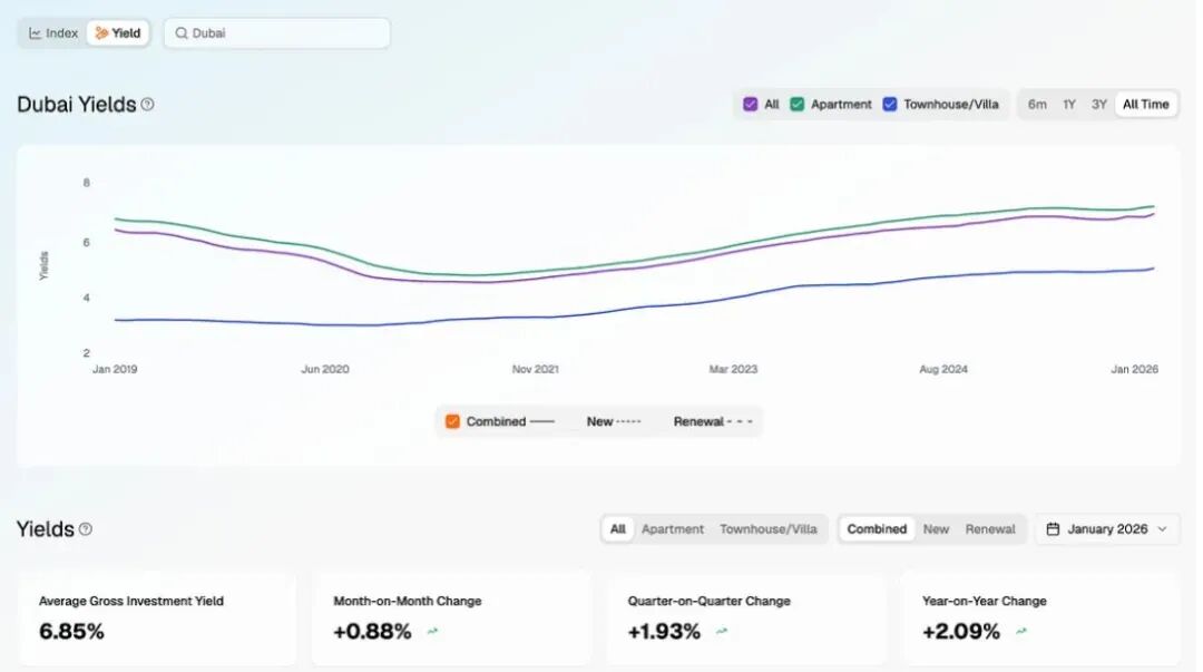 据迪拜土地局(DLD)2月披露,2026年2月迪拜房产销售交易量约16979套,同比上涨5.1%;房产均价1740迪拉姆/平方英尺(约3.95万元/平方米),同比上涨12.2%。