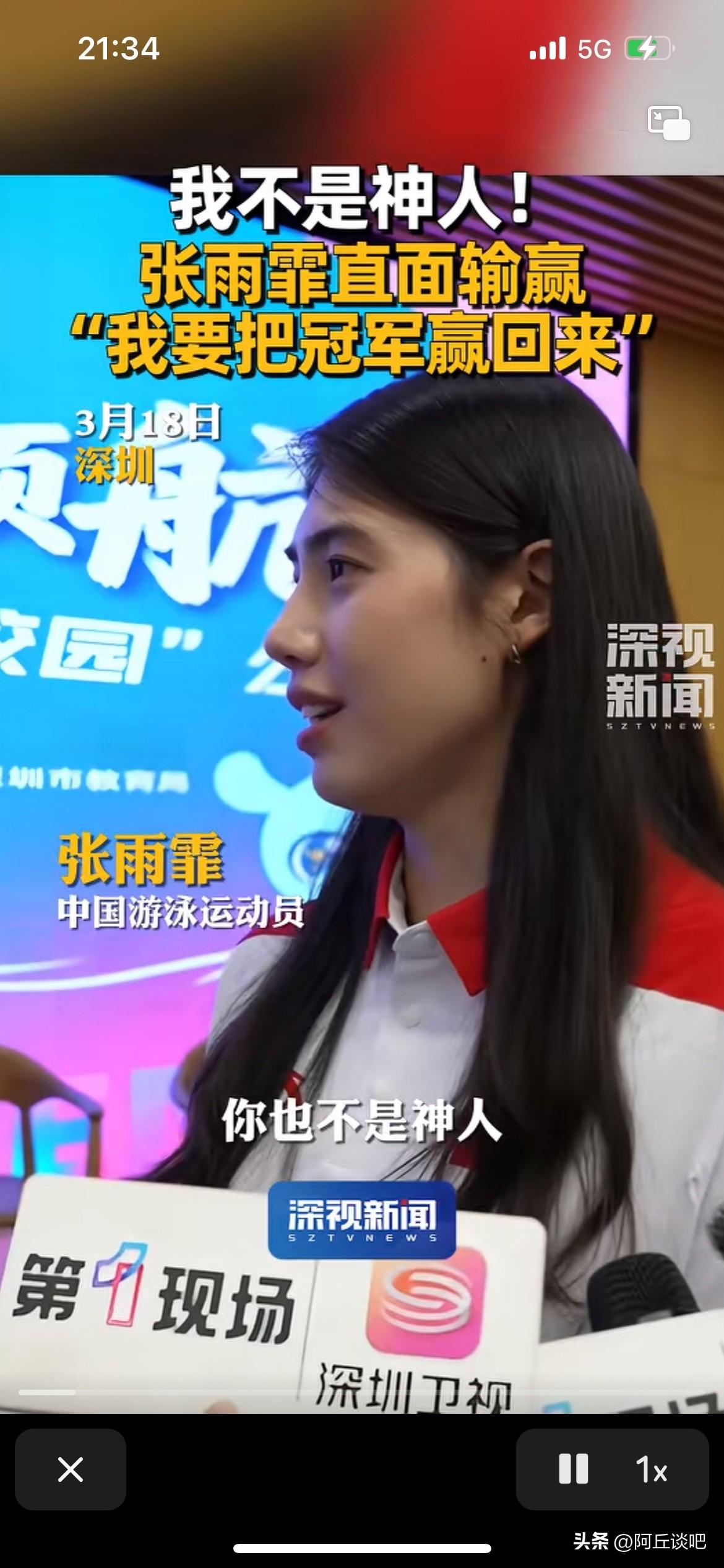 张雨霏老师解释为什么比赛有输有赢,大家都是人,并不是神,只要有拼的动力,就一定会赢回来的。 说的对,谁也不是神,不可能每次都赢,我们能做的就是做好自己,认真对待每次比赛,全力以赴,尽自己最大努力就好。 不过输了就输了,别说输赢正常,如果正常你可以输一次赢一次,但是你输十次,赢一次就不正常,说明你技不如人,所以要不断的进步。