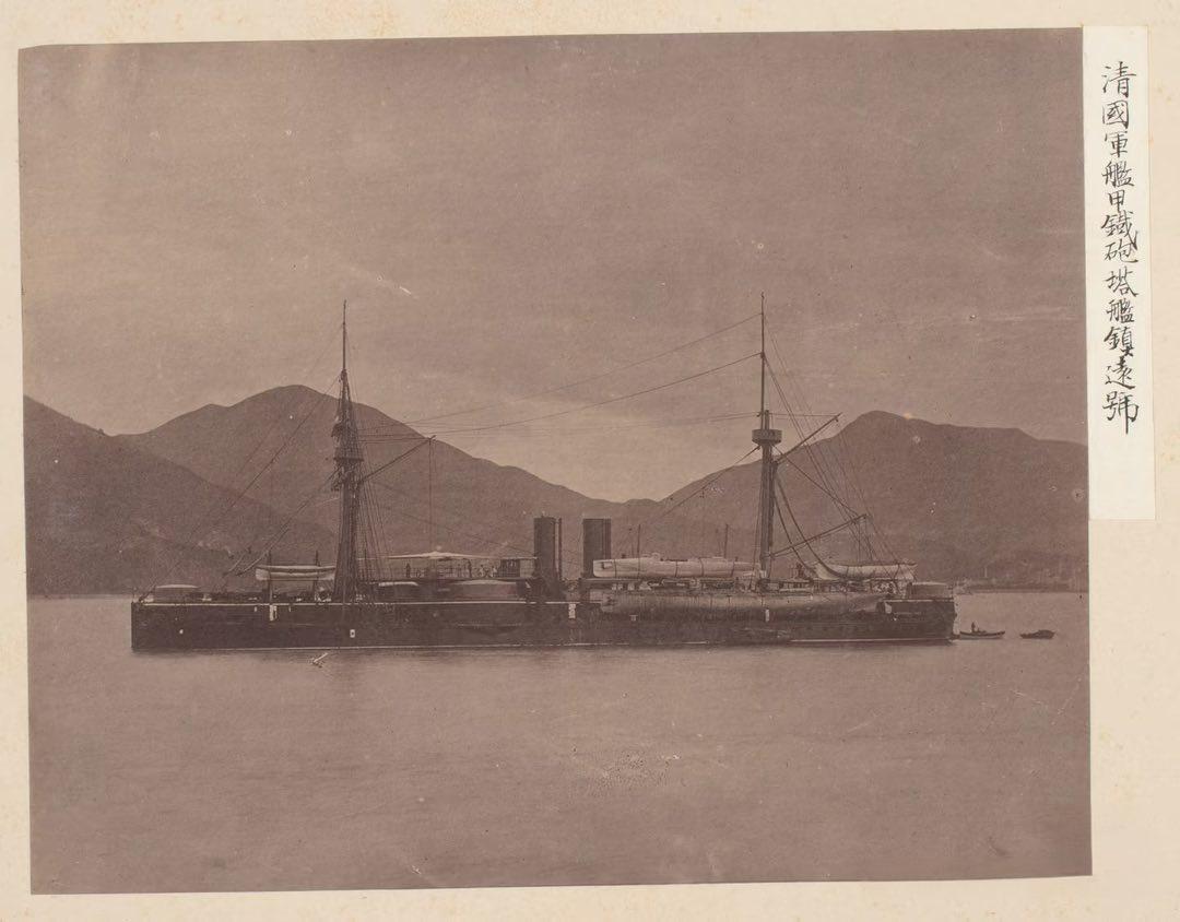 晚清,军港里的镇远号铁甲舰,右侧日文标注“清國軍艦甲鐵砲艦艦鎮遠號”。 这艘号称“亚洲第一巨舰”的铁甲舰,曾是北洋水师的骄傲,与定远号一起守护着中国海疆。可甲午一战,它沦为日寇战利品,最终被拆解成废铁。照片中,镇远号停泊在军港内,双桅杆、双烟囱的标志性布局清晰可见,甲板上的炮廓与救生艇等细节,还原了它作为铁甲舰的威武形态。 镇远号是洋务运动的核心成果,与定远号一起撑起了北洋水师“亚洲第一、世界第六”的荣光,是晚清海防的中流砥柱。