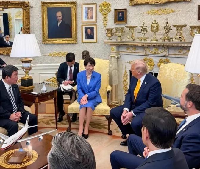高市早苗访特朗普:媚态拉满,美日同盟再紧绑! 高市早苗访白宫见特朗普,全程“名场面”不断:下车小碎步投怀送抱,见特朗普照片面露喜色、见拜登画像捂嘴偷笑,讲话直夸特朗普儿子帅气、称其遗传父亲,引发广泛热议。 她刻意以女性身份展现亲近姿态,用男性政客难以采用的“媚态”与“亲昵”,强化美日同盟;特朗普也给予罕见高规格接待,不仅午宴,还有晚宴,尽显对日本的重视。 此举本质是日本借女性身份软化外交姿态、拉近对美关系,背后是美日同盟的深度绑定。在当前大国博弈加剧、世界局势动荡的背景下,美日关系愈发紧密,值得高度警惕。
