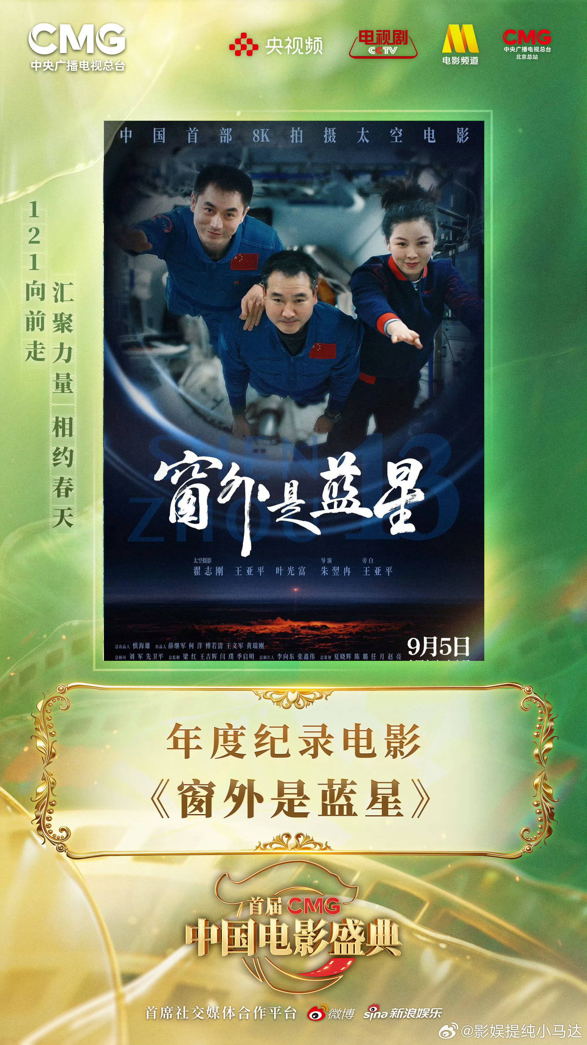 接⬇️CMG中国电影盛典年度动画电影《哪吒之魔童闹海》年度动作电影《捕风追影》年度纪录电影《窗外是蓝星》年度跨界力量《浪浪山小妖怪》