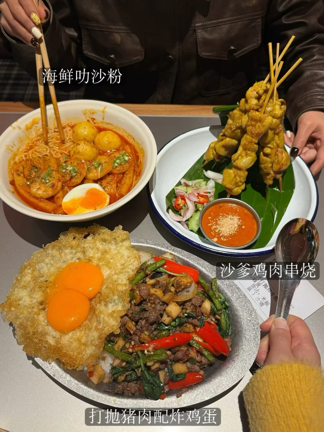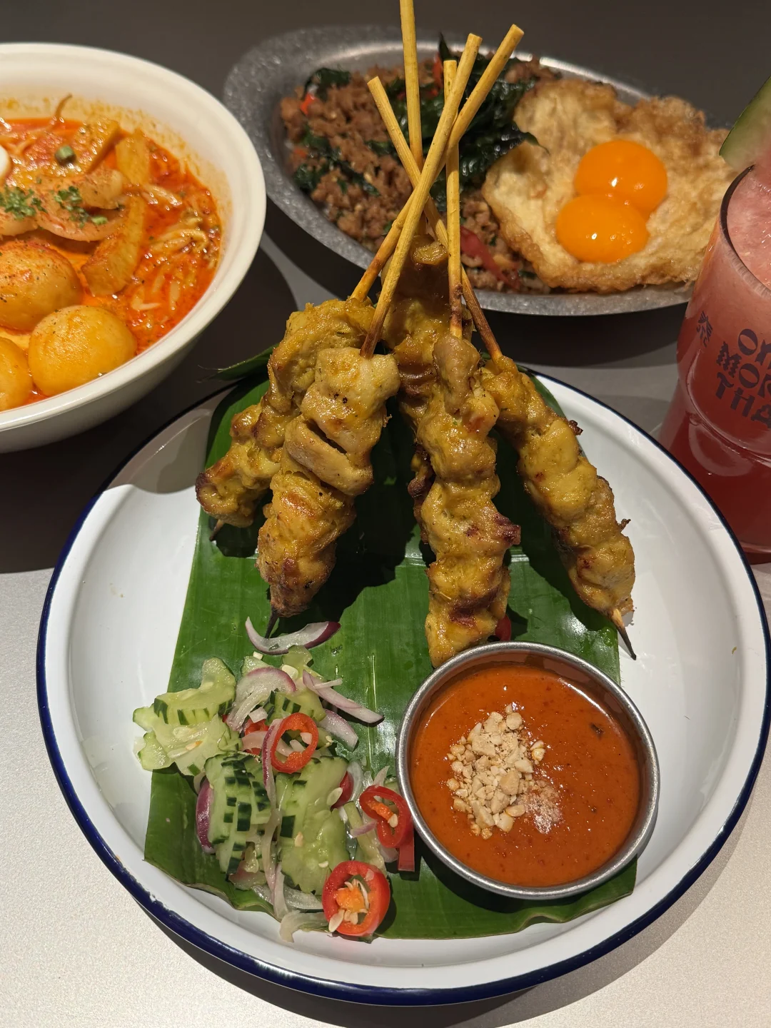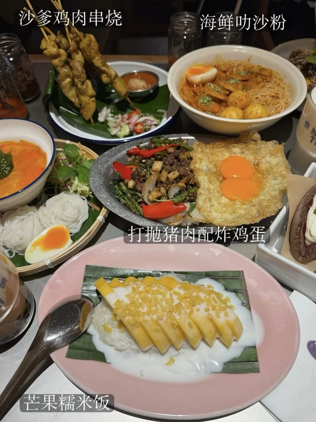 真的六刷了!!!味道真的正!!!店里的菜点了个7788,总结近期好吃靠谱的点单!!! —— • 冰淇淋朱古力飞饼 • 黄金椰子蛋烘糕 • 椰子豆奶冰沙 • 打抛猪肉饭配炸蛋 • 海鲜沙叻粉 • 沙爹鸡肉串烧 —— 📍ONEMORETHAI 泰铺 ·