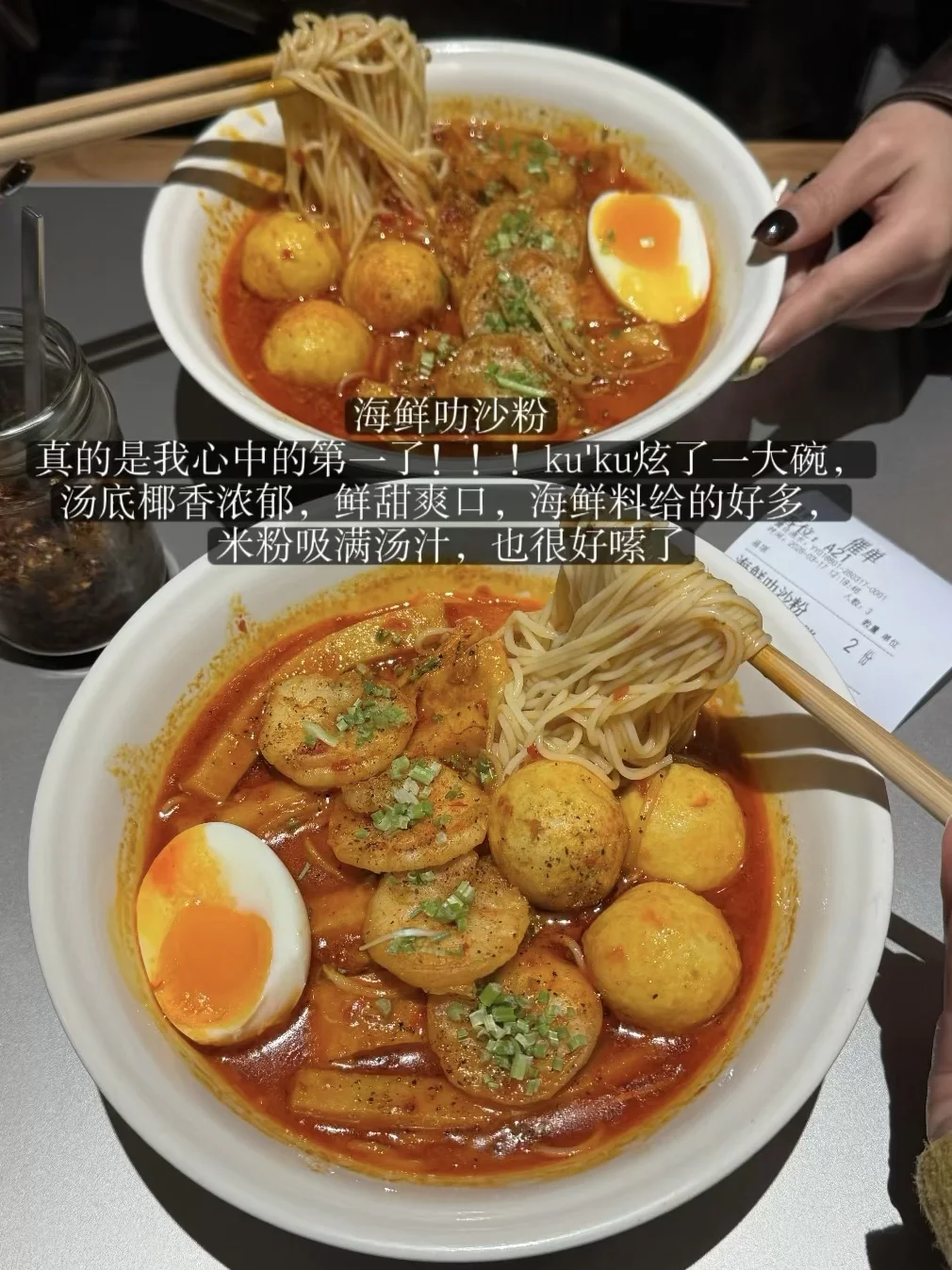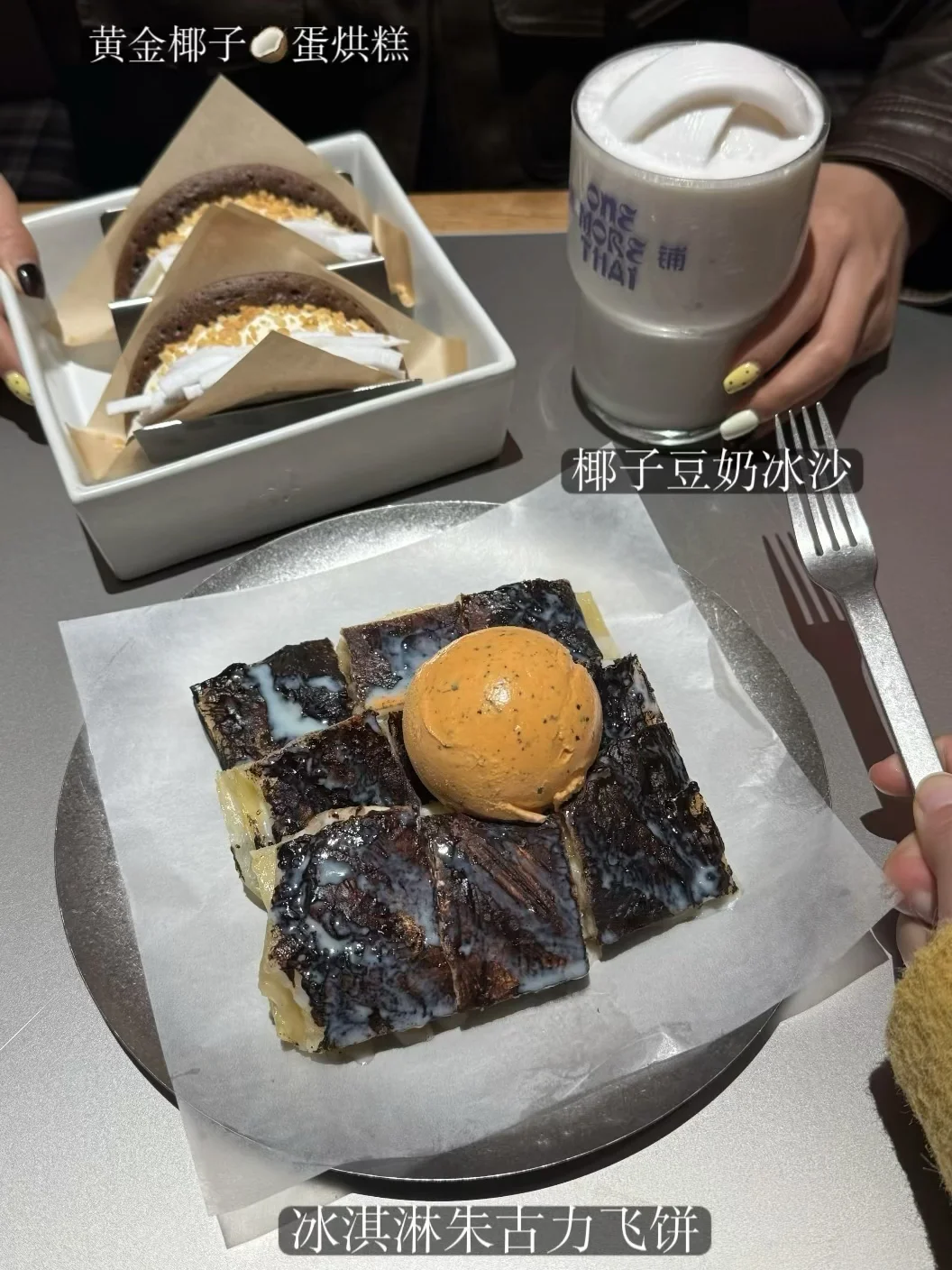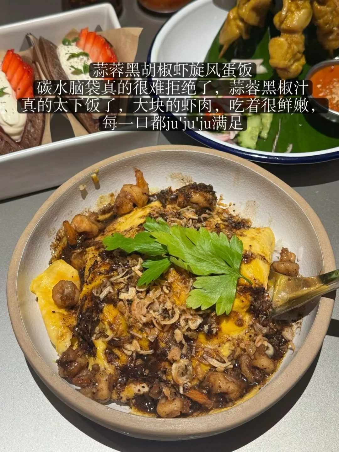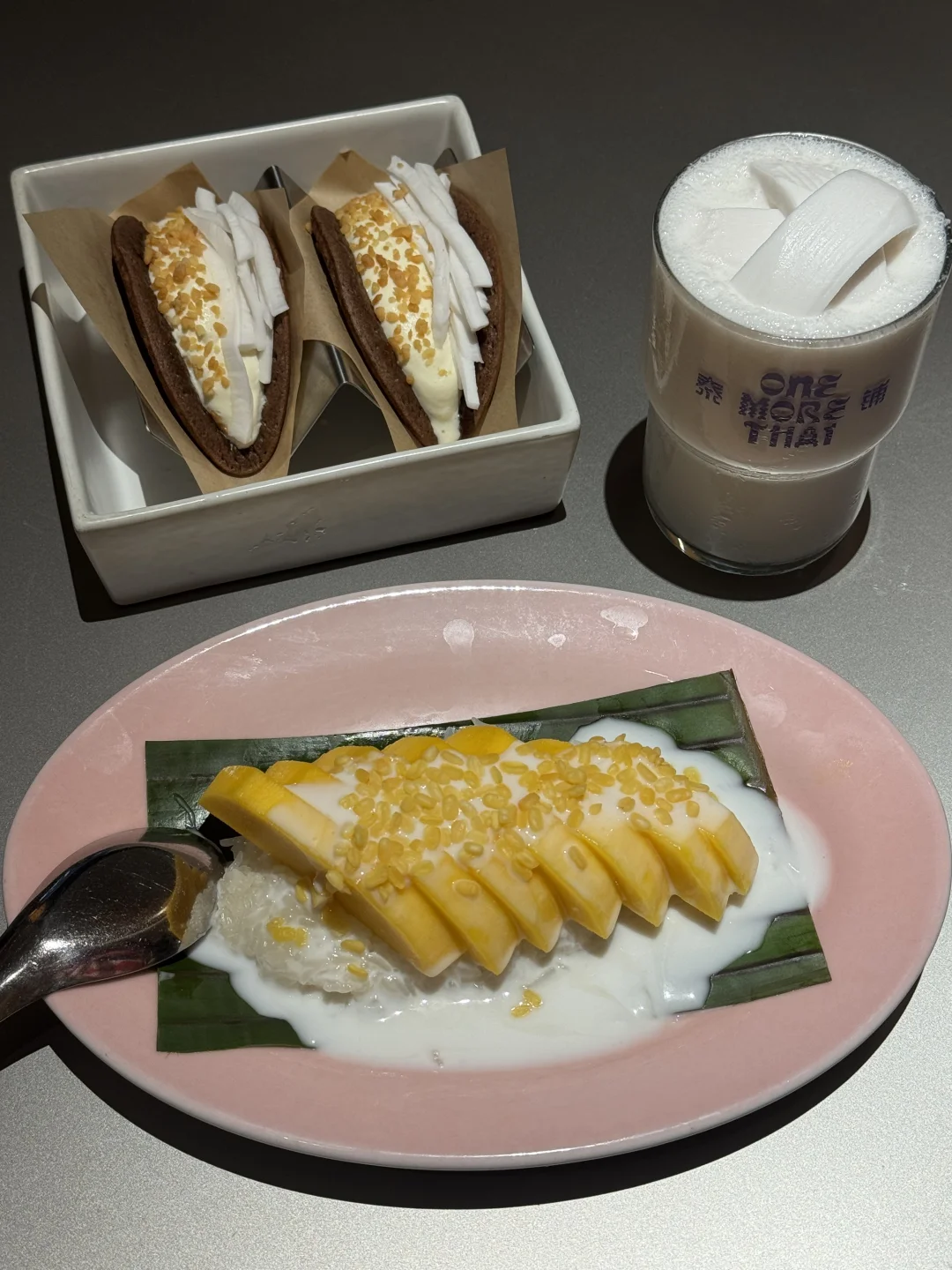 真的六刷了!!!味道真的正!!!店里的菜点了个7788,总结近期好吃靠谱的点单!!! —— • 冰淇淋朱古力飞饼 • 黄金椰子蛋烘糕 • 椰子豆奶冰沙 • 打抛猪肉饭配炸蛋 • 海鲜沙叻粉 • 沙爹鸡肉串烧 —— 📍ONEMORETHAI 泰铺 ·