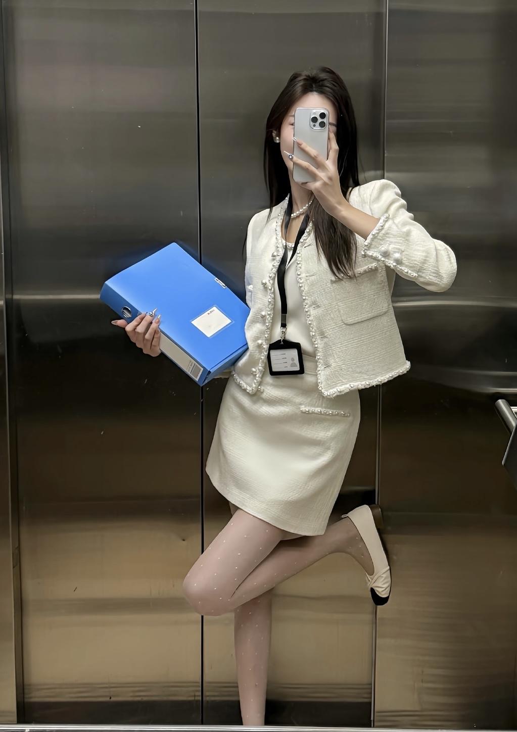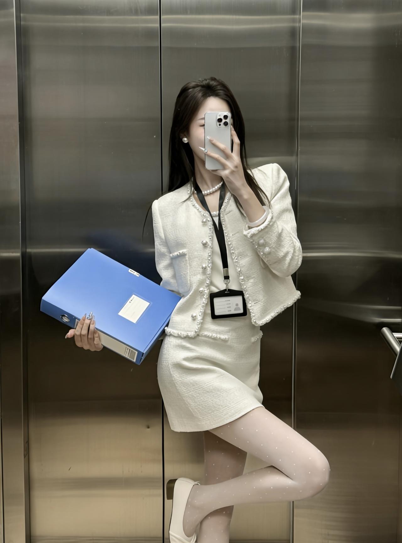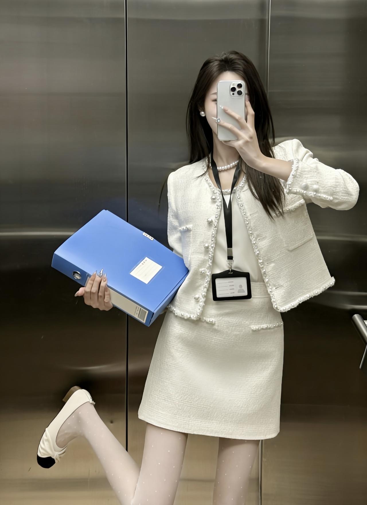 正常穿搭推荐,无不良引导 今天推荐这套是温柔干练的小香风通勤套装,整体奶白色调,精致又不失温柔感: • 上衣:短款粗花呢小香风外套,边缘和门襟点缀珍珠纽扣,既保留了粗花呢的肌理感,又通过珍珠元素增添了优雅精致感,内搭同色系缎面吊带,中和了外套的硬朗,更显温柔。 • 下装:同面料A字短裙,长度在大腿中部,高腰设计拉长腿部线条,裙身也有珍珠装饰,和外套形成呼应,整体更协调。 • 配饰与鞋袜:珍珠项链+小巧耳钉,提升精致度;波点丝袜+黑白拼色玛丽珍鞋,在通勤感中注入了一丝甜美元气,同时保持了得体感。 这套穿搭的风格介于正式与休闲之间,适配度很高: 1. 职场通勤 ✅ 小香风套装自带专业感,长度得体、配色干净,非常适合办公室、部门会议、客户对接等职场场景,既不会过于严肃,又能体现专业素养。 2. 轻商务场合 ✅ 比如小型商务洽谈、行业沙龙、公司团建,这套穿搭比正装更柔和,比休闲装更正式,能展现优雅得体的形象。 3. 日常约会/下午茶 ✅ 奶白色+珍珠元素自带温柔滤镜,搭配波点丝袜和玛丽珍鞋,甜而不腻,很适合和朋友约会、逛美术馆、喝下午茶,温柔又有气质。 4. 轻社交场合 ✅ 比如闺蜜聚会、品牌活动、小型展览,这套穿搭精致不张扬,能轻松融入氛围,拍照也很出片。 💡 小Tips • 如果想更休闲,可以把玛丽珍鞋换成小白鞋,瞬间切换成日常温柔风。 • 如果想更正式,可以换成纯色丝袜+低跟皮鞋,更适合重要会议或正式商务场合。