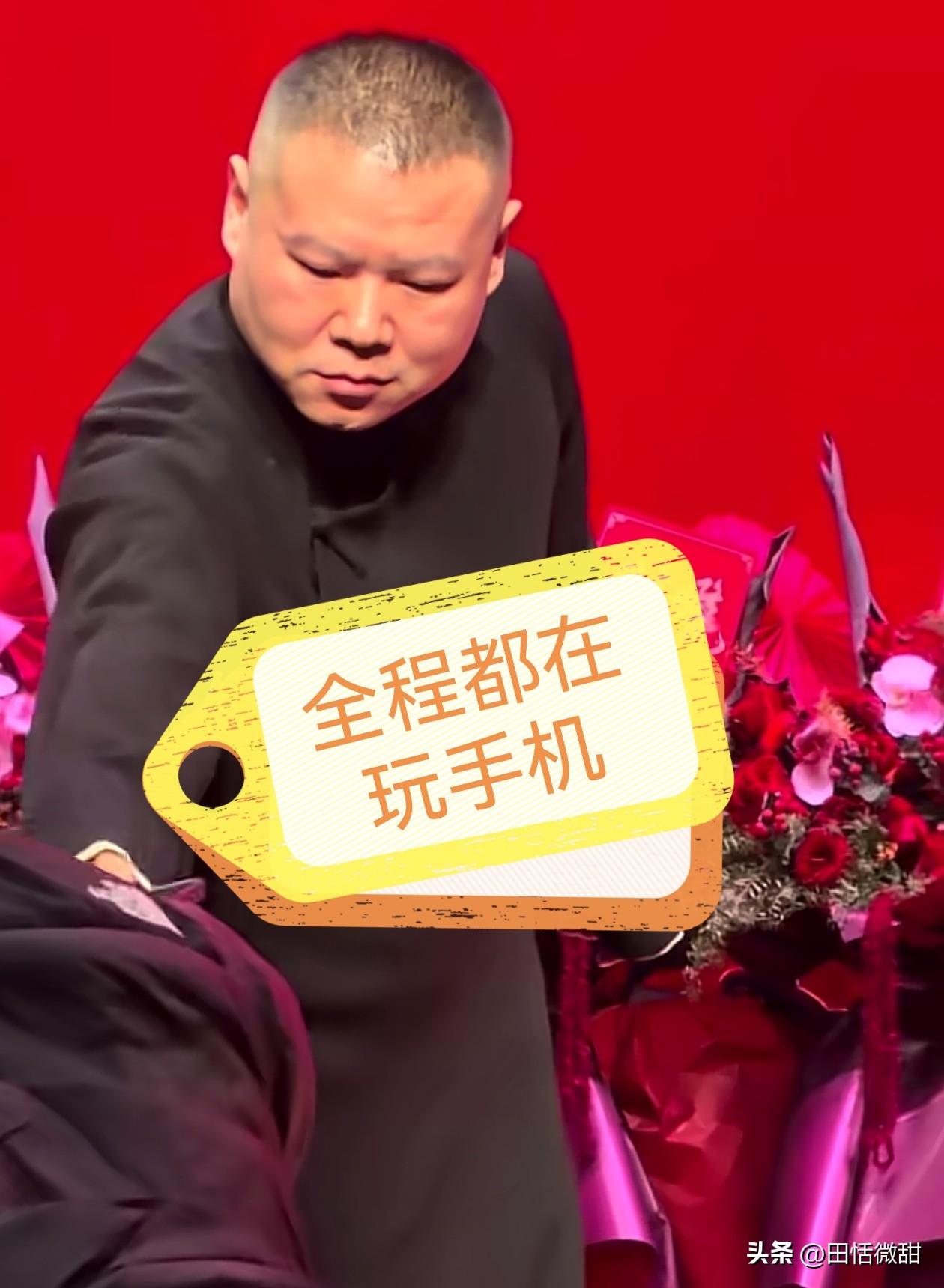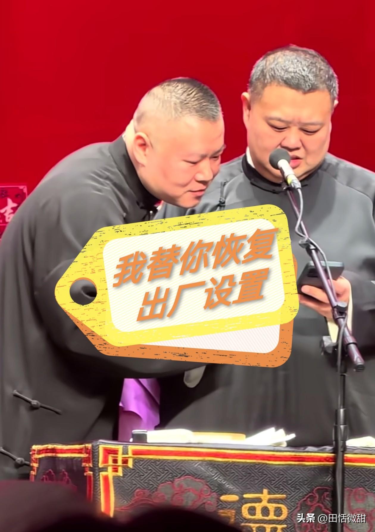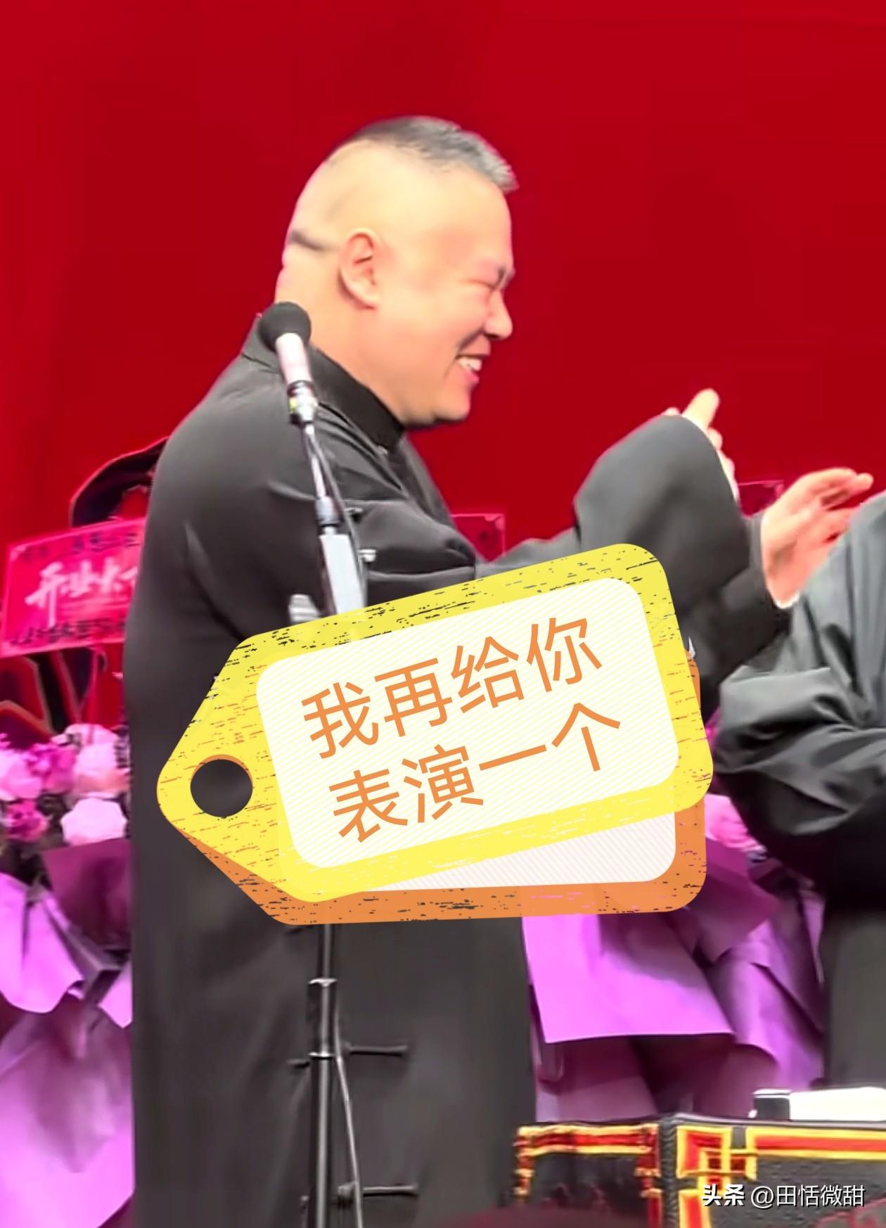 岳云鹏不装了,在台上黑脸。 在上海德云社演出,岳云鹏指着台下一个女士,大喊着“全程都在玩手机,把手机给我”,说着走到女士跟前,真的接过手机放到了桌子上。 一旁的孙越也打趣:“有什么事非要在这查啊,还买头排的票。” 岳云鹏突然变脸,坏笑了起来,“再给你表演一次啊”,然后他就快速摇头耸起肩来。这还不算完,孙越拿起桌子上的手机,说了一句“我替你恢复出厂设置啊”。 有控场,有互动,有包袱,有配合,岳云鹏可以了。当看到有人在他表演时,在跟前长时间看手机,属实看不下了,所以才有了这样的包袱,临场反应优秀了。 对此,你们怎么看呢?