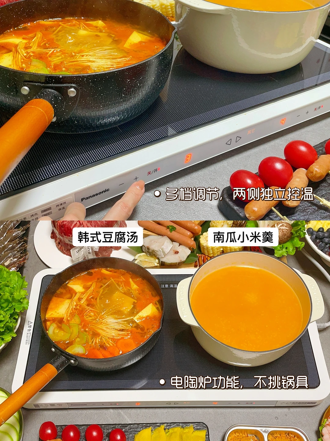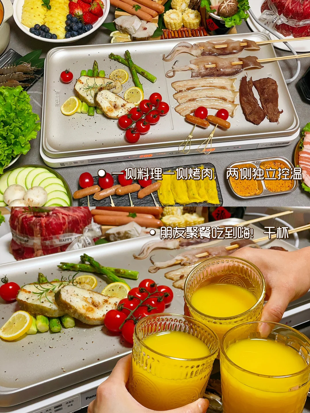 ☘️朋友聚餐原来的小烤盘就跟不上了,必须要一个多功能锅,家里的聚嗨盘直接派上用场。人多用餐妥妥的满足。烤盘左右两侧独立控温,可以煎烤也可以做料理。换下烤盘就是电陶炉模式,升温加热特别快,还不挑锅具,炖煮煲汤样样行。满足了大家不同的用餐口味,家宴聚餐简直太方便了[赞R]