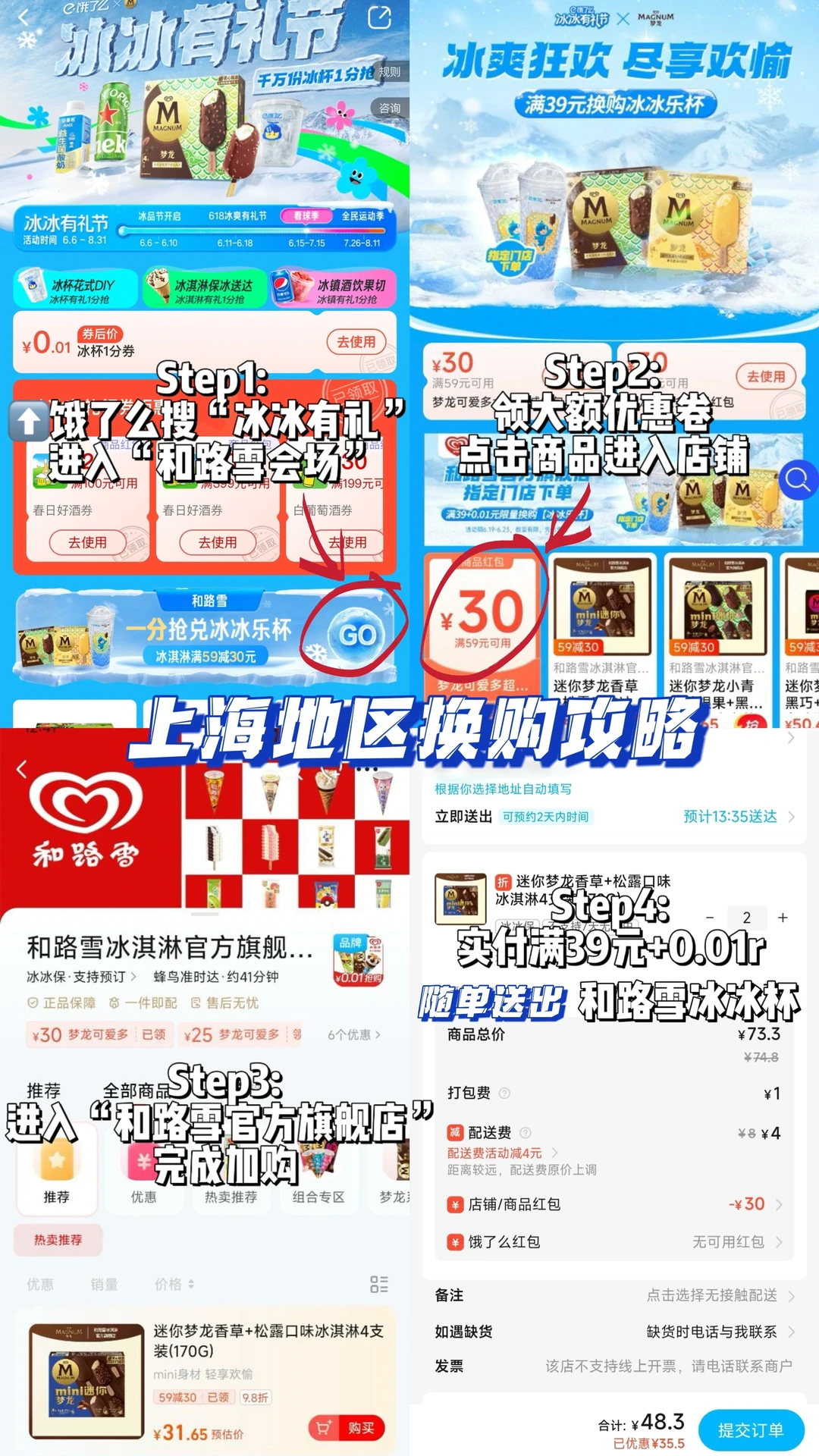 ✔其他地区的姐妹也有和路雪冰品领券满59元-30元的大福利!