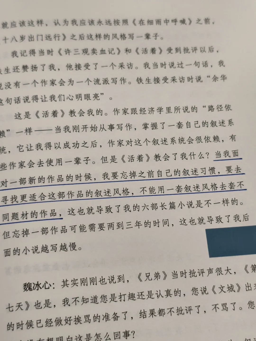 🔵解读经典时,余华仿佛一位冷峻的外科医生。
