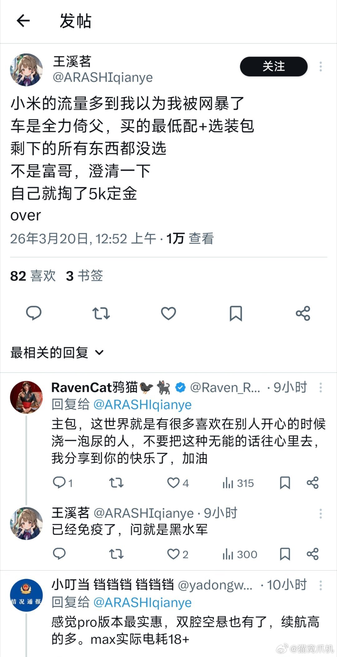 有博主下单新一代su7不敢发国内社交平台怕惹人眼,没想到发外网依旧热度爆表,看流量还以为自己被网暴了。