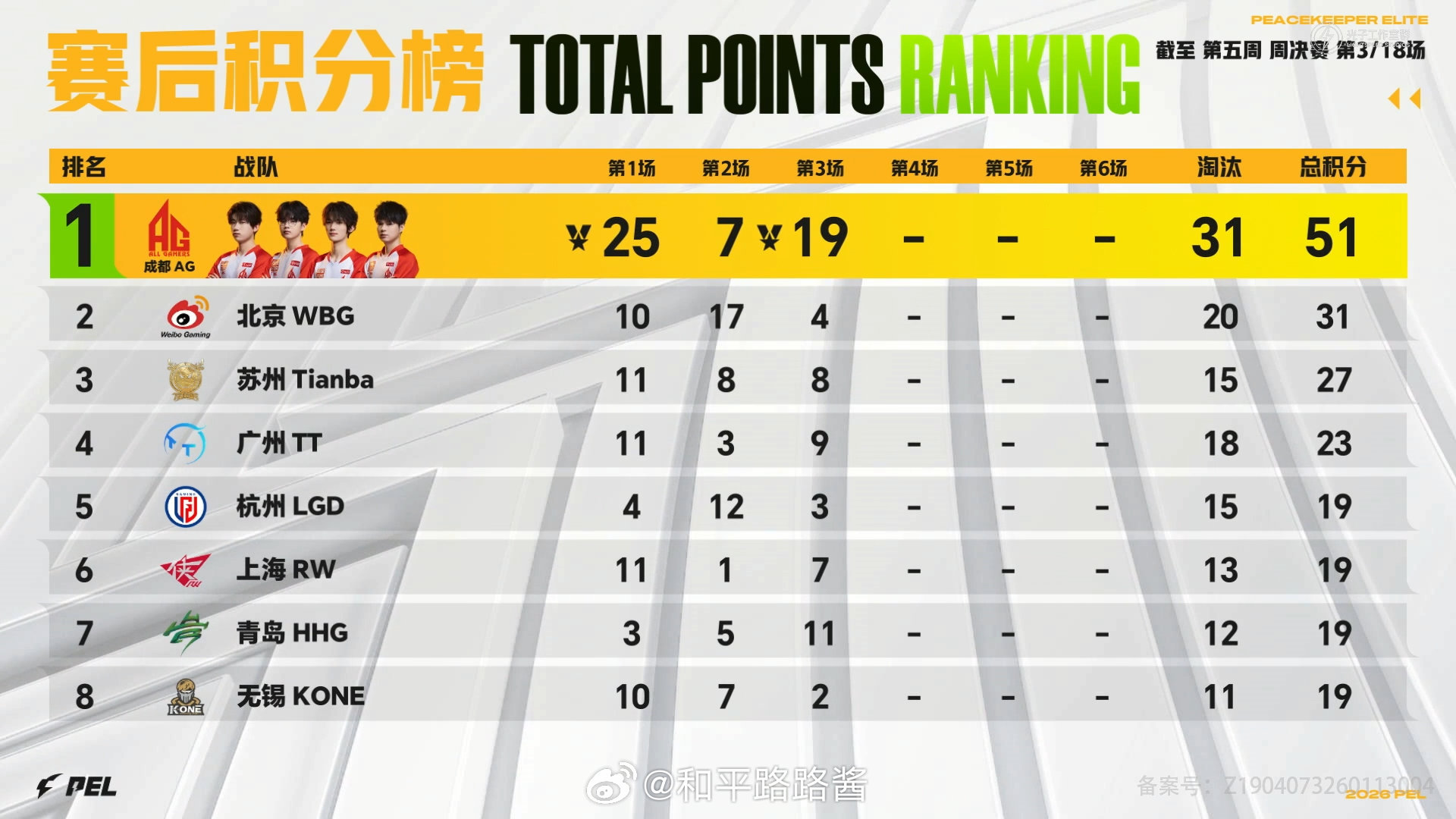 【2026 PEL 春季赛】Week5 Day2 第三场 AG三局两鸡PEL春季赛第五周周决赛
