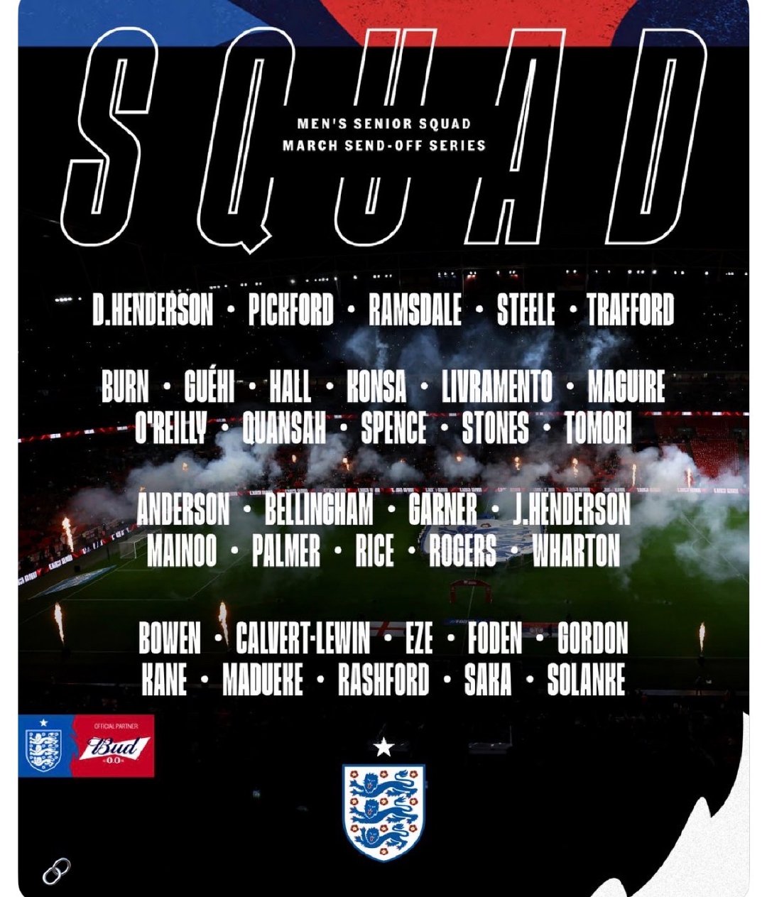 🚨贝林厄姆入选英格兰国家队大名单,参加本次国际比赛日。特伦特没有被图赫尔征召。