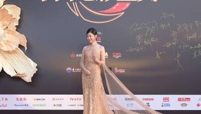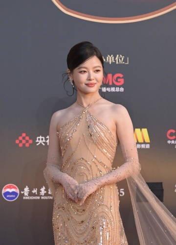 辛芷蕾的肩颈线条美到极致,搭配她的挂脖亮片纱裙,完美凸显了她的气质与身形,整个人的美丽仿佛是与生俱来的。