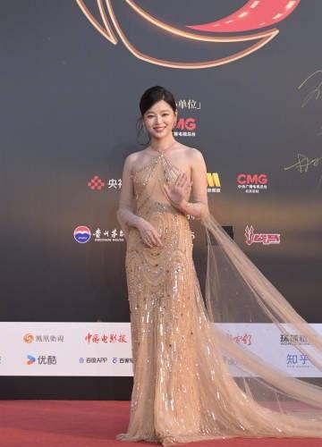 辛芷蕾穿这条挂脖亮片纱裙,肩颈线条显得特别修长,优雅的气质加上独特的设计,简直是