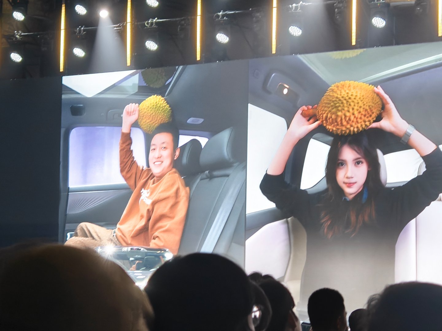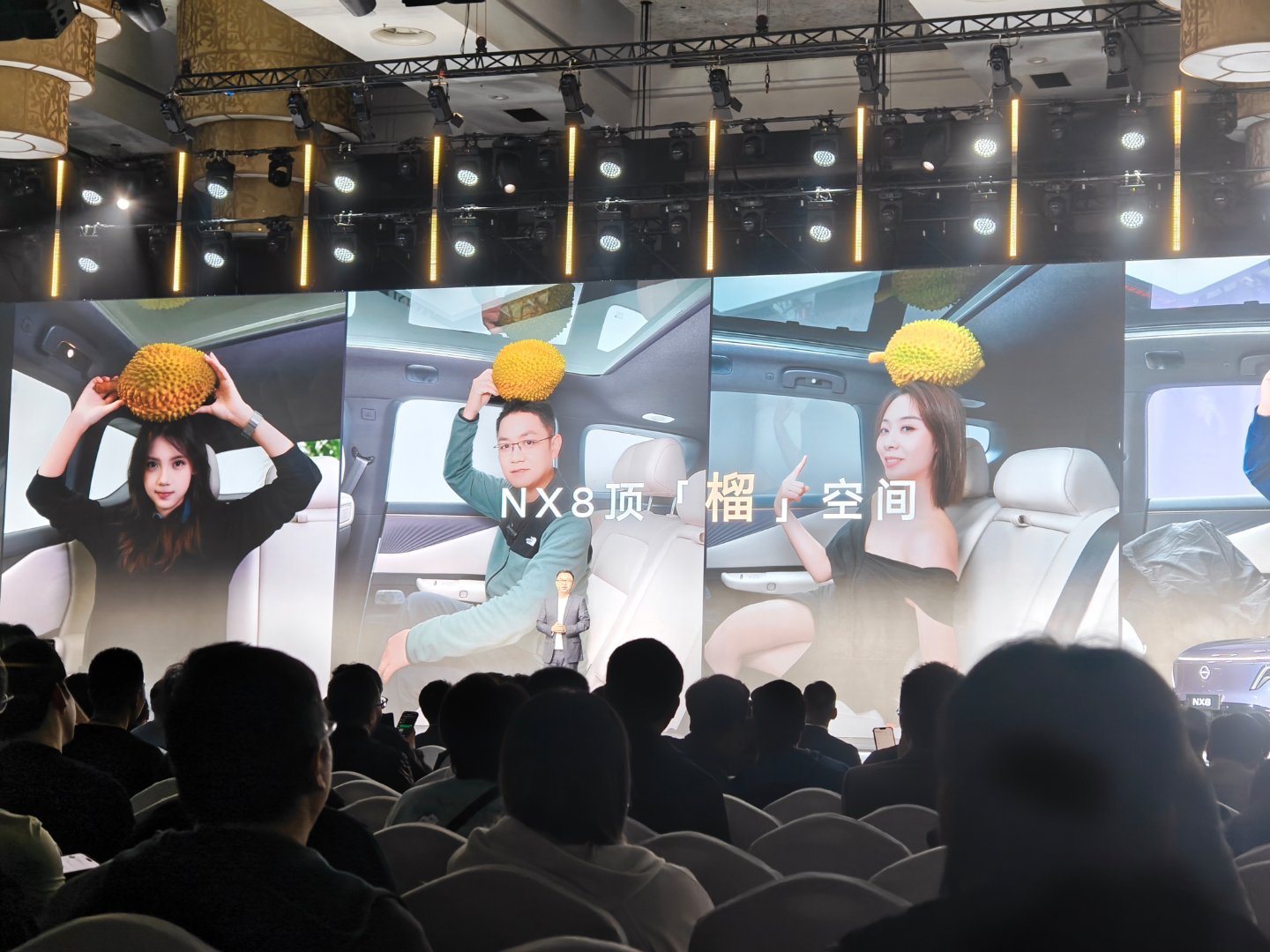 东风日产NX5头部空间很大,能顶一个榴莲~话说最左边那位媒体老师怎么看起来那么眼