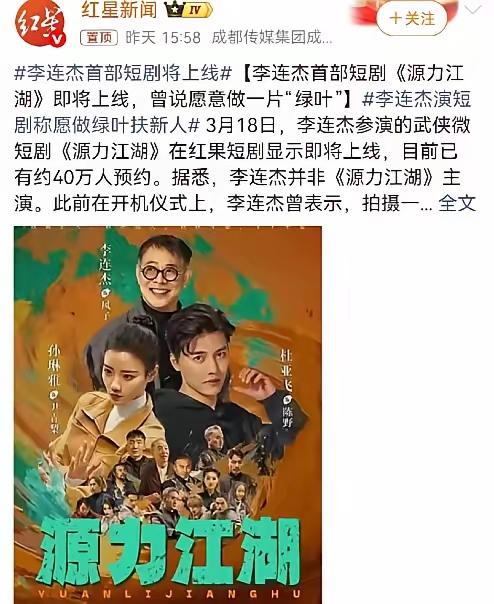 62岁李连杰突然杀回江湖!首部微短剧《源力江湖》预约破40万,真相背后竟藏着一代功夫之王的“未了情”与“传承泪” 当那个曾经在银幕上飞檐走壁、拳脚生风的“功夫皇帝”再次闯入公众视野,带来的不是一部好莱坞大片,而是一部名为《源力江湖》的微短剧。消息一出,瞬间点燃网络——短短时间,预约人数冲破40万大关!有人惊呼“爷青回”,也有人质疑“巨星为何‘降维’拍短剧?”但拨开喧嚣,你会发现,这从来不是一场简单的复出。 曾几何时,李连杰的名字就是中国功夫的代名词。《少林寺》里的觉远,《黄飞鸿》系列中的宗师,他用一个个经典角色,将中华武术的魂刻进了几代人的记忆。然而,岁月流转,华语功夫片市场渐显疲态,新生代武者难觅踪影。那个在镜头前挥洒热血的少年,如今已年过花甲。 这些年,我们见过他因病痛传闻屡上热搜,也见过他淡然辟谣,坦然面对衰老。他渐渐淡出聚光灯,却从未远离他挚爱的武术。这一次,他选择以“绿叶”之姿,踏入微短剧这片新江湖。不是主角,却甘当桥梁,为年轻演员杜亚飞、孙琳雅铺路。他说,这是梦想,更是责任。 微短剧,单集几分钟,碎片化观看,正是当下年轻人最热衷的内容形式。李连杰看到了这一点。他并非不知晓外界可能的议论——“巨星拍短剧,是否掉价?”但他更清楚,比形式更重要的,是内核。电影可以宏大,短剧亦可精悍。只要能触达更多人,尤其是年轻一代,让中国功夫的魅力以他们喜爱的方式延续,便值得。 开机仪式上,他一身朴素,抱拳行礼,自称“新人”。那一刻,没有巨星光环,只有一位武术传承者的虔诚。他说,前辈将功夫传给了他,他不能让它断层。这份沉甸甸的使命感,远比“捞金”“复出”的浅薄猜测更接近真相。华语功夫电影需要薪火相传,而微短剧,或许正是他找到的那枚新火种。 网络上的声音纷杂。有粉丝激动支持,称“无论如何都要看”;也有冷嘲热讽,聚焦国籍、年龄甚至健康。但预约数字不会说谎——40万人的期待,汇聚成一股无声的力量。它告诉我们,无论时代如何变化,真功夫、真情怀,始终有它的市场与共鸣。 《源力江湖》即将在红果短剧上线。这不仅仅是一部剧的诞生,更是一个文化符号的主动转身。李连杰用行动证明,传承从未拘泥于形式。从大银幕到小屏幕,变的只是载体,不变的是一颗想让中国功夫再次被看见、被热爱的赤子之心。江湖从未远去,只是换了种方式,来到我们眼前。 (来源:综合自红星新闻、红果短剧官方信息及网络热议) 李连杰新剧 功夫传承