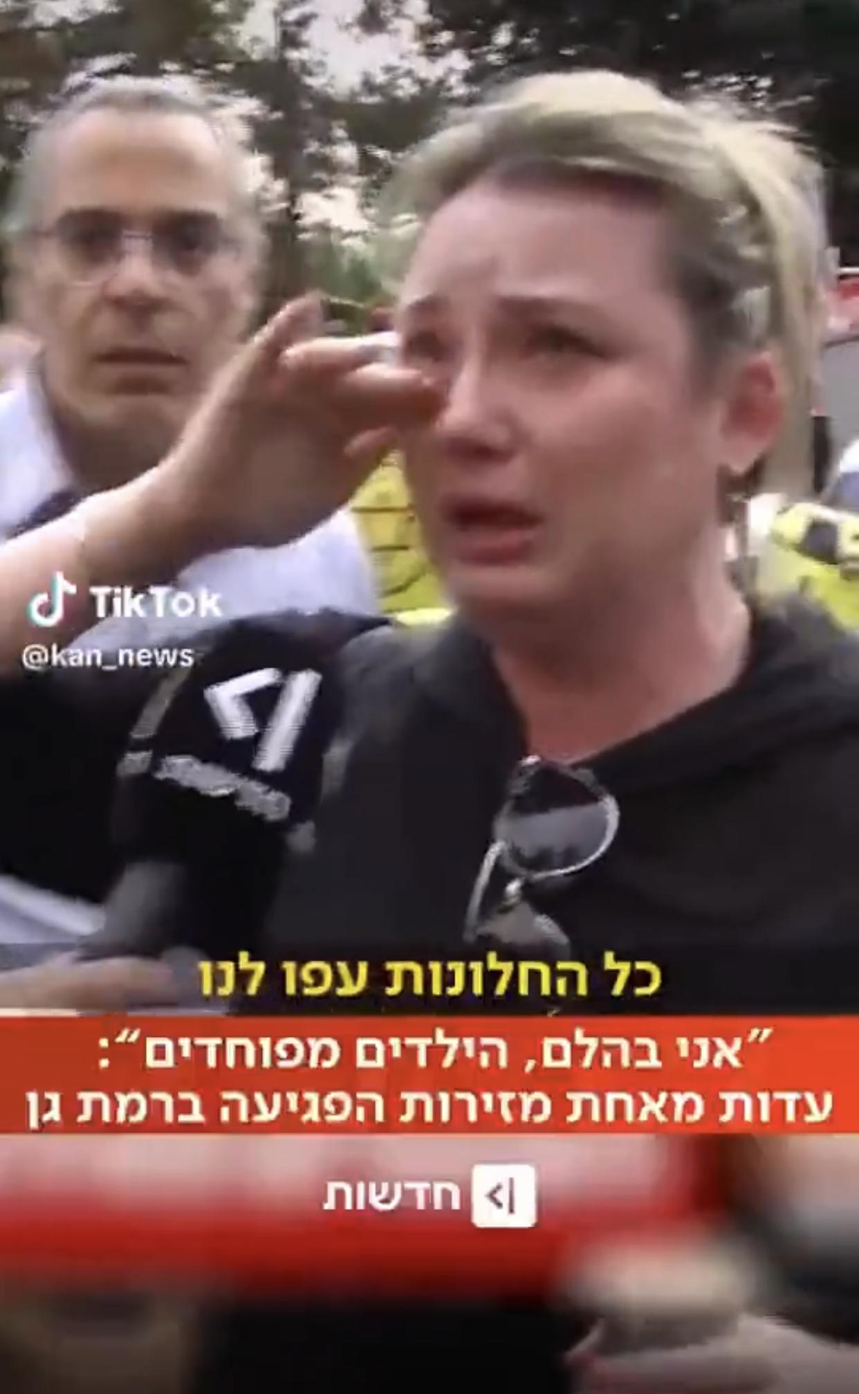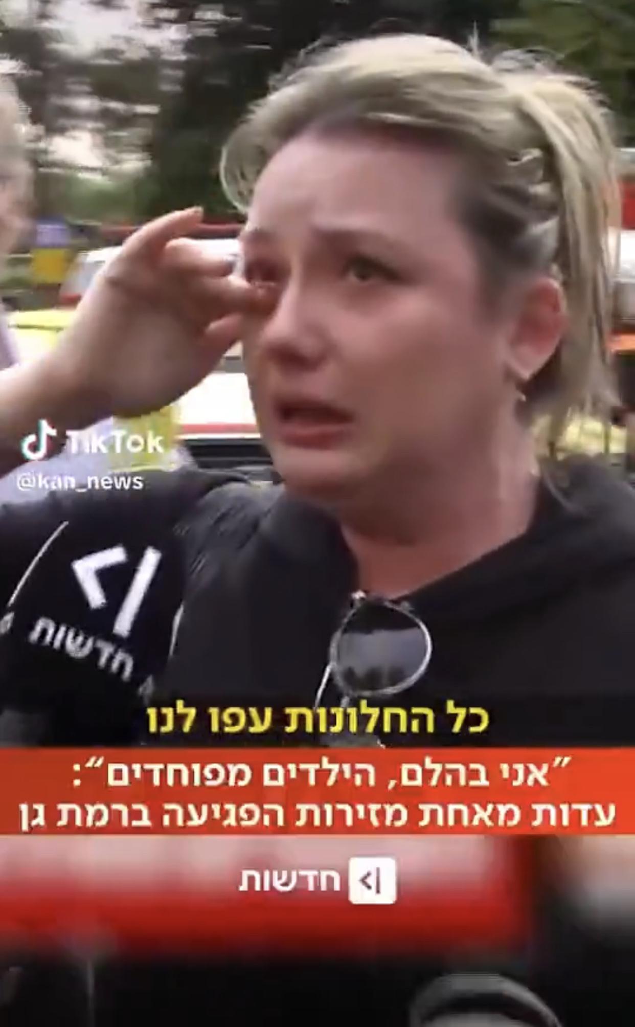 有一位在特拉维夫的以色列女子对着镜头哭诉道:我们现在真的很惊恐,孩子们也都非常害