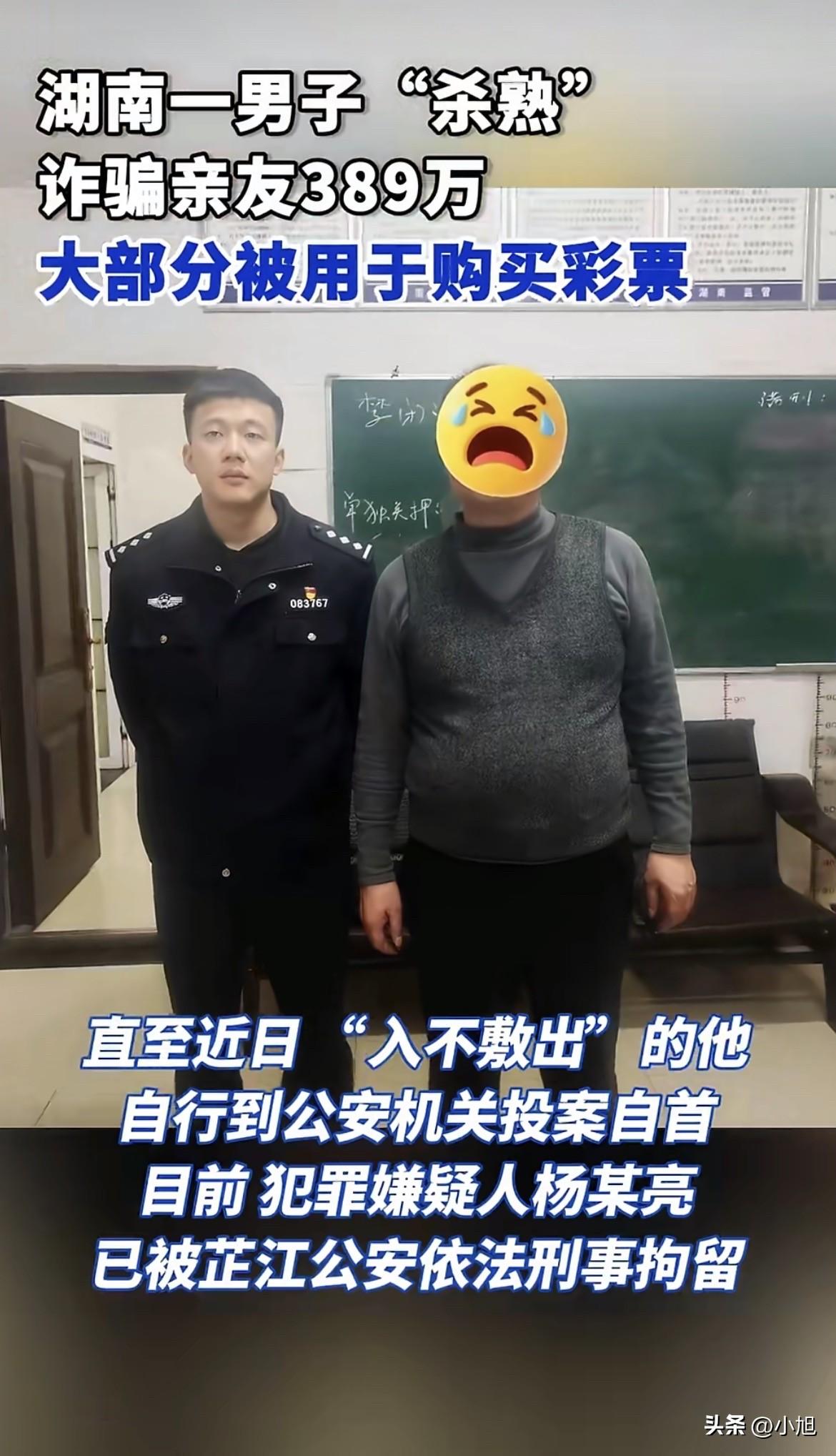 他走进公安局的时候,身上一分钱都没有了。 2026年3月的某一天,55岁的杨某亮站在芷江公安局门口,犹豫了很久。最后他还是推门进去了,跟值班民警说:我骗了人,来自首。 民警让他坐下慢慢说。他低着头,把这些年的事一五一十交代了。从2016年开始说起,说到2020年怎么伪造身份,说到今年怎么撑不下去。他说话的时候声音很低,偶尔抬头看民警一眼,眼神里没有害怕,反倒有一种如释重负的感觉。 6年了,终于不用再演了。 杨某亮以前在沪昆高速一个服务区上班,那会儿日子过得还算安稳。工资不高,但够他花。可他嫌钱少,2016年就不干了。 离职之后他没去找新工作。他迷上了买彩票。 这个人心里一直有个念头,觉得买彩票能让他一夜暴富。他研究号码,看走势图,每次开奖前都觉得自己要中了。可每次开奖后,都是一场空。 钱花光了怎么办?找亲戚朋友借。今天跟这个借五百,明天跟那个借两千。借钱的时候都说很快还,可转头又买了彩票。 就这么拆东墙补西墙,到了2020年,窟窿已经很大了。光靠借已经不够了,他得想个新办法。 他给自己编了个身份——沪昆高速服务区的项目经理。还私刻了两枚公章,做了一份分红明细表。 然后他开始找亲戚朋友开口:服务区有个内部投资项目,月息3%,每个月分红,到期本金全退。他是项目经理,有这个渠道。 月息3%,一年就是36%。这个回报率放在市场上,谁听了都知道有问题。可杨某亮是熟人,是亲戚,是从小看着长大的。有人信了。 第一个投钱的是他表姐。表姐拿了5万出来,第一个月真的收到了1500块分红。表姐高兴得不得了,还跟别的亲戚说这个项目靠谱。 消息就这么传开了。亲戚介绍亲戚,朋友介绍朋友。6年时间,11个人,389万。 杨某亮拿到钱以后,会拿出其中一部分付分红,剩下的全买彩票。今天张三的分红,用的是李四的本金。明天王五的利息,又得骗赵六投钱进来。 他每天都算账。这个月要付多少分红,下个月还有谁的本金到期,新钱能不能及时到账。算来算去,算到今年3月,实在算不下去了。 新钱骗不进来,旧账压得喘不过气。一分钱都拿不出来了。 杨某亮这个人,其实挺聪明。他知道怎么让人相信他,知道什么时候该说好听的话,知道什么时候该催人投钱。他伪造公章、做分红表、编项目细节,这些都不是一般人能做到的。 可他把这份聪明用错了地方。 被骗的11个人里,有他的表姐、堂哥、邻居、发小。这些人都是看着他长大的,都觉得他不会骗人。可偏偏就是他,骗得最狠。 他每天买彩票的时候在想什么?可能觉得自己马上就能中了,中了就能把钱都还上。可他不知道,彩票这个东西,越买越上瘾,越买越觉得自己能赢。每次差一个号就觉得下次一定行,下次又差一个号,就这么一直买下去。 这叫控制错觉。买彩票的人总觉得自己能预测结果,能控制概率。可彩票这东西,哪里是你控制得了的。 杨某亮就是被这种错觉困住了。他以为再买一次就能翻身,结果翻进了看守所。 现在杨某亮已经被刑事拘留。55岁的年纪,本该是安稳准备退休的时候,他把自己送进去了。 那些被他骗的亲戚朋友呢?389万,能追回来多少还不知道。有的人投的是养老钱,有的人投的是给孩子买房的钱。现在全没了。 最扎心的是什么?是那些人到现在可能都没想明白,为什么是杨某亮。 你想想看,一个人跟你认识了几十年,从小到大没坑过你,突然有一天跟你说有个好项目,你投不投?大多数人都会犹豫一下,可最后还是投了。不是因为贪心,是因为信任。 可信任这个东西,用好了是感情,用坏了就是刀子。杨某亮这把刀,捅得最深。 如果是你,亲戚跟你说有内部投资机会,月息3%,你会投吗? 来源:湖南公安、芷江公安、点时新闻