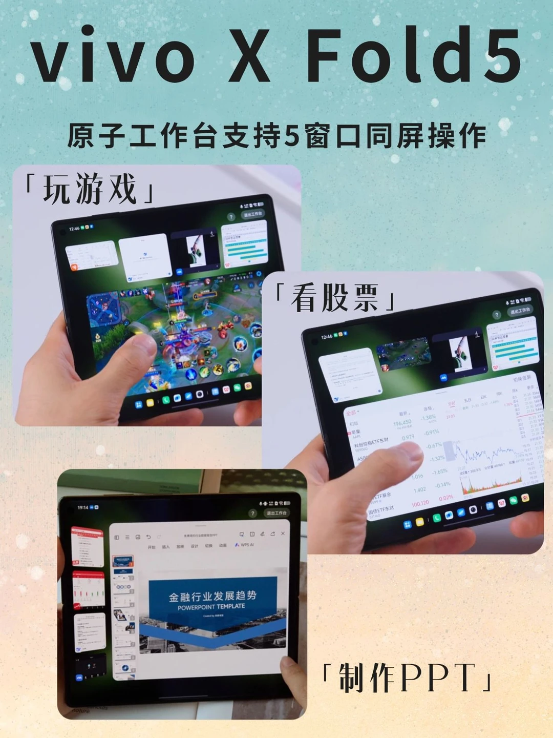 展开秒变小平板,可以说是打工人神器!左变边挂着会议假装听讲,中间浏览器查资料,右边微信疯狂聊天,角落还能挂个小游戏偷偷摸鱼,五个窗口同时开都不卡,老板还以为我在认真干活~