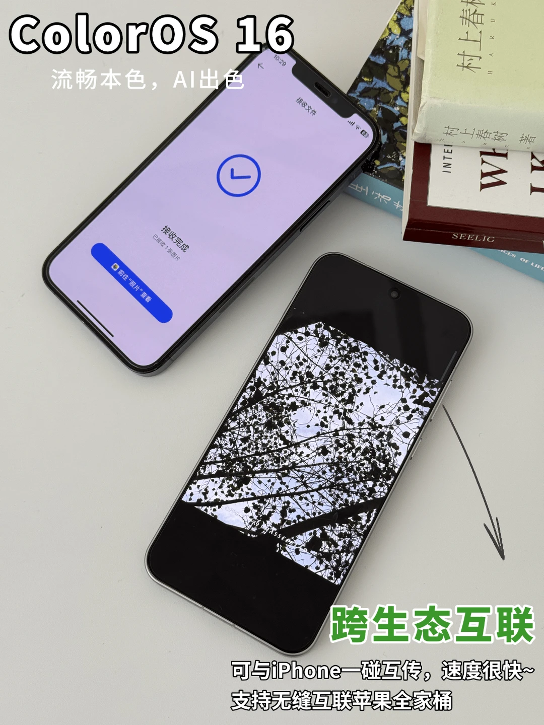 ✨️跨生态互联更是惊喜,和 iPhone 一碰互传,苹果全家桶也能无缝联动,双机党终于实现生态自由~
