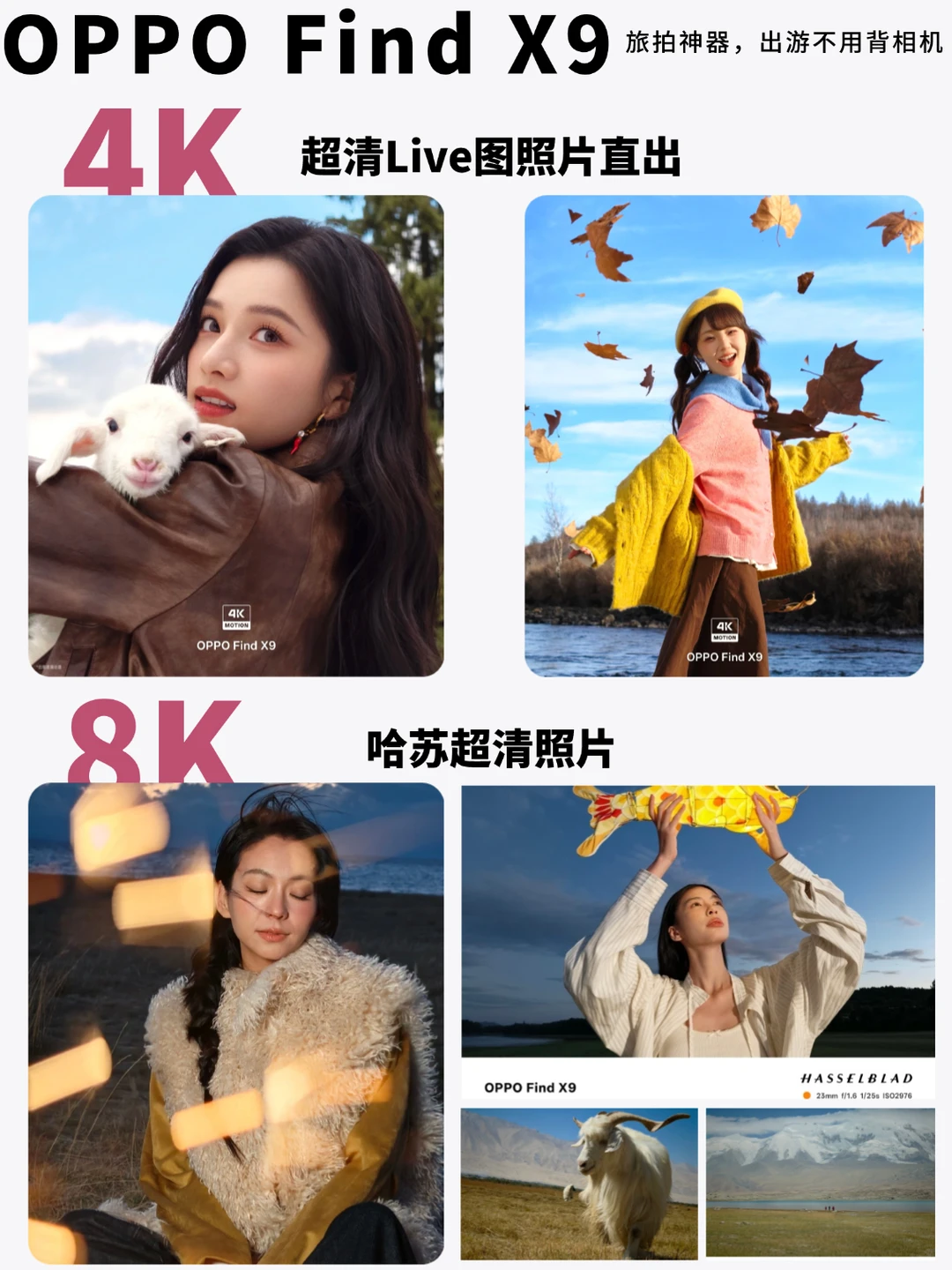 哈苏超清四摄,继承了Ultra级丹霞色彩还原镜头,质感满满!不但能直出8K超清照片,4K 实况直出也是从拍摄到分享全链路高清,旅拍时还能拼个实况图时间线,故事感直接拉满,直接揣着手机就能出片,谁还扛着相机打卡啊,妥妥用这台旅拍神器直接搞定!出游再也不用带相机!
